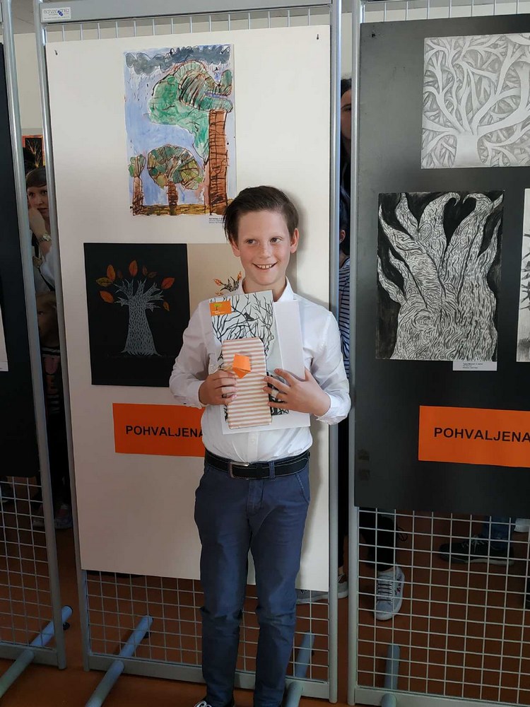 Na državnem likovnem natečaju Drevo na OŠ Šturje so sodelovali tudi učenci naše šole. Med 1492 deli sta priznanja prejela dva učenca; Alan Peršolja, učenec 4.a, je prejel srebrno priznanje in Nej Stojičević, učenec 2.a, bronasto priznanje. Čestitamo.