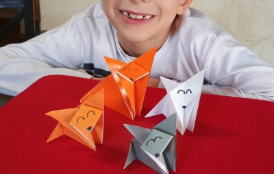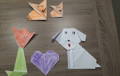 Prvošolci smo spoznali, da lahko papir oblikujemo na različne načine. Sami smo se preizkusili v origamiju. Nastale so origami lisičke.