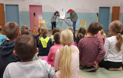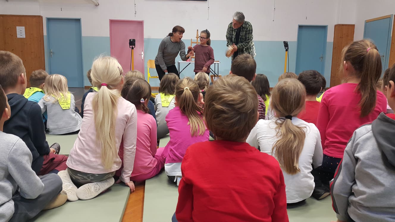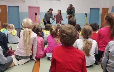 Prvi, drugi in tretji razredi pa smo si v četrtek ogledali lutkovno predstavo z naslovom: Zgodba za gumbe. V njej smo mimogrede spoznali slikarja, ki je narisal sonce, oblak, dečka in zmaja. Iz vsega je nastala zanimiva zgodba, ki se je končala nekje na nebu.