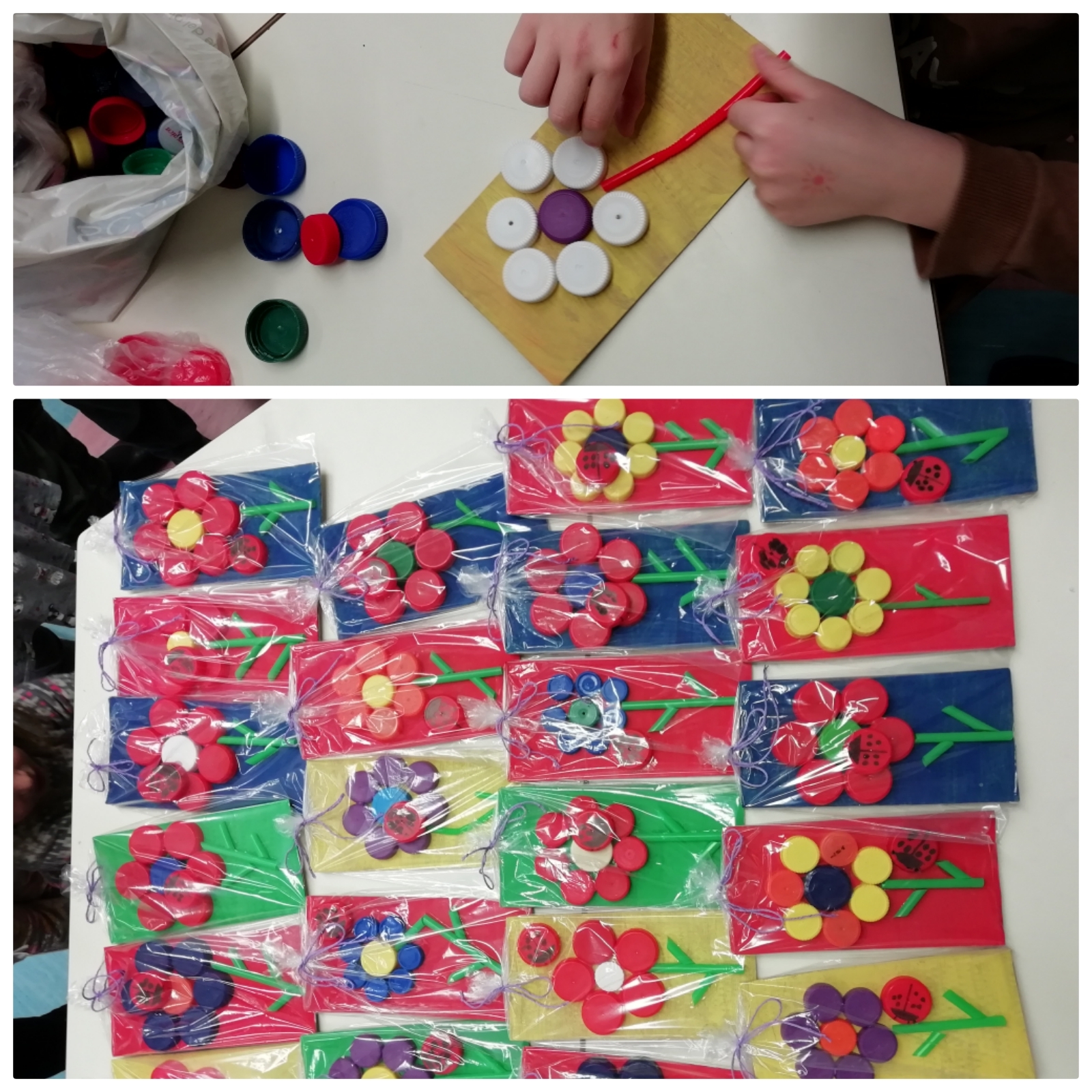 Ob dnevu žena so iz odpadnega materiala izdelali rožice za mame, babice…