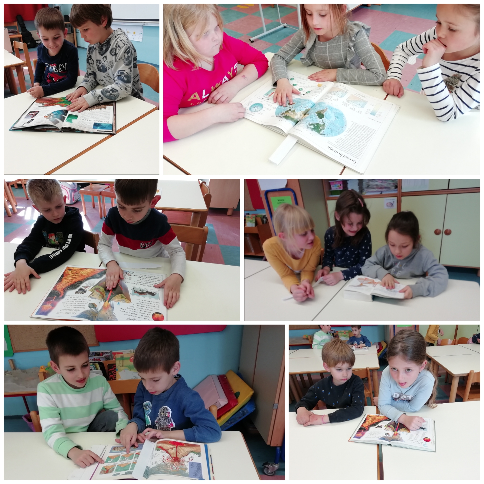 Tema cici Vesele šole »Ognjeniki, dimniki Zemlje« je bila za učence zelo zanimiva. Ogledali so si nekaj filmčkov, v skupinah prelistali različne strokovne knjige in se pogovarjali ter širili svoje znanje o vulkanih. Posebej so bili navdušeni ob poskusu »izbruh vulkana«, ki se je zgodil kar v njihovem peskovniku.