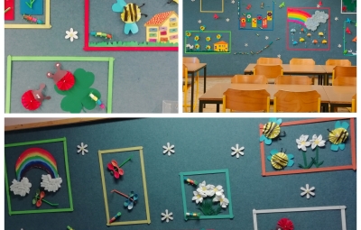 V pričakovanju pomladi so se zavzeto lotili dela in nastale so najrazličnejše »pomladne slike«, katere skupaj z izdelki učencev iz ostalih OPB krasijo šolske hodnike in jedilnico.