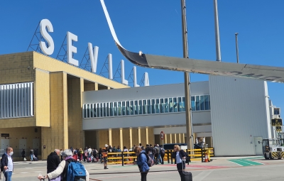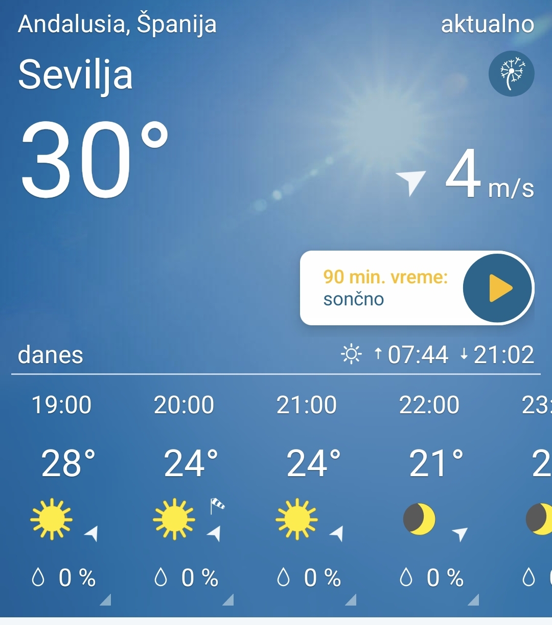 Dan smo začeli ob 5.45 uri, zbrani na šolskem obračališču v pripravljenosti na odhod (7 punc in 3 učiteljice). Poslovili smo se od staršev in naša dogodivščina se je začela. Po dveh urah vožnje smo prispeli na letališče Trevisio in se vkrcali na letalo za Sevillio. Čez dobre tri ure smo prispeli v vročo poletno Sevillio. Temperaturna razlika - vsaj 15 stopinj. Z avtobusom smo se odpeljali do centra mesta in se zgubljali na poti do hostla. Seveda smo ga našli. Takoj smo se preoblekli v poletne obleke in se odpravili raziskovat center mesta. Ker smo bile tudi lačne, smo imeli “kočerjo” (kar je kosilo in večerja skupaj), v Mcdonaldsu. Zatem smo nadaljevali z ogledom znamenitosti. Fotografirale smo se na vsakem koraku, saj je potrebno ovekovečiti vsak trenutek. Privoščile smo si tudi kepico sladoleda, ki nas je zelo osvežila. Po napornem, a zabavnem dnevu smo se odpravili proti hostlu in se pripravili na naslednji dan.