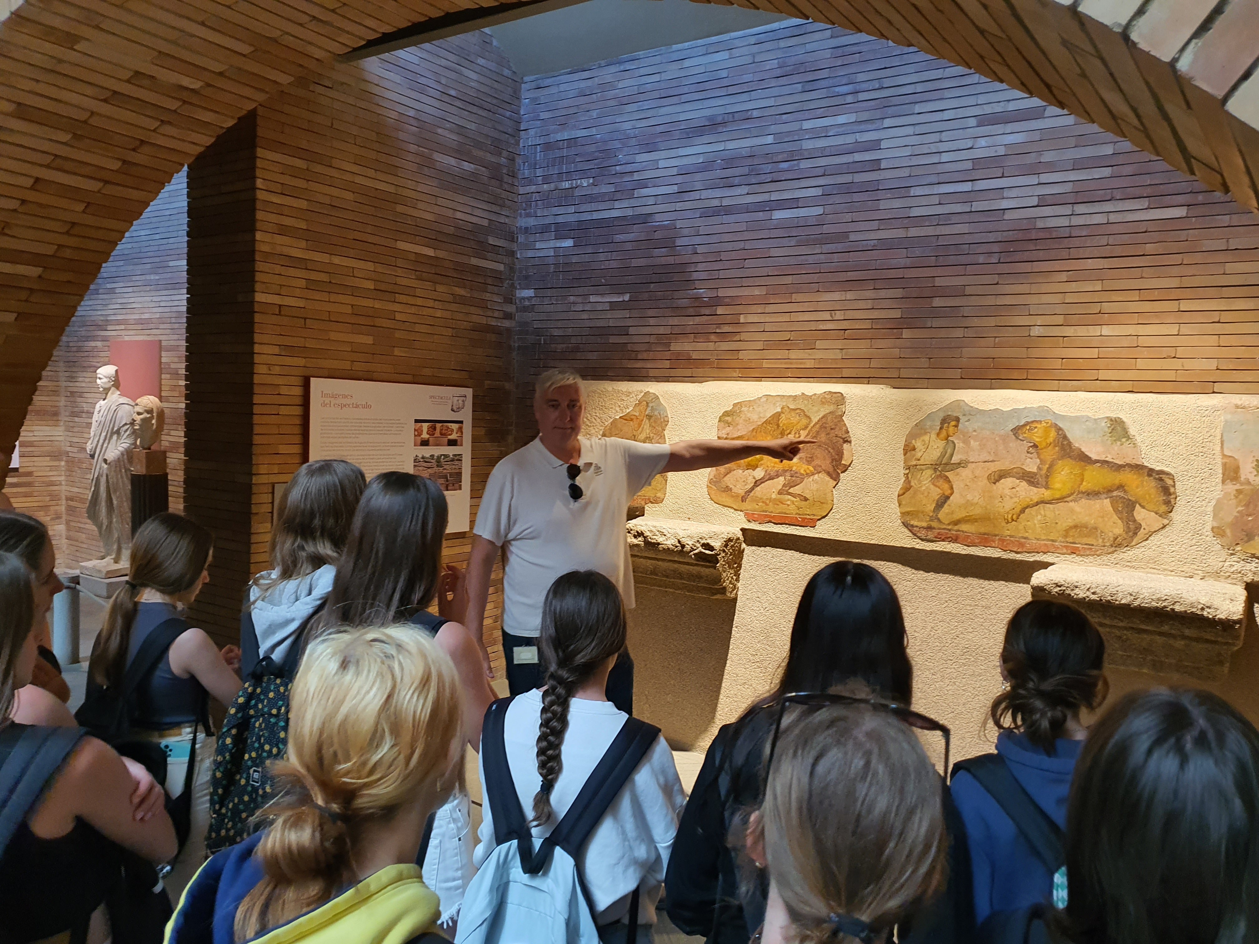 Kot vsako jutro smo se ob 8:30 z avtobusom odpeljali na novo raziskovanje. Danes je bilo na vrsti mesto Mèrida. Po enourni vožnji smo se razdelili v dve skupini in obiskali delavnico izdelovanja mozaikov. Izdelali smo tudi svojega. Zatem smo si ogledali muzej rimljanskih ostalin in si ogledali največje znamenitosti tega antičnega mesta. Sledil je prosti čas, med katerim smo pojedli kosilo in se sprehodile po trgovinah. Ob 16. uri pa smo si še ogledali rimski amfiteater, v katerem je ravno takrat potekala predstava, zato je bilo doživetje toliko bolj zanimivo. Dobili smo še nekaj minut prostega časa, nato pa se ob 18. uri odpravili proti "domu", Fuente de Cantos.7. dan