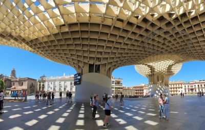 Na trgu La Encarnacion se nahaja največja lesena konstrukcija na svetu. Ta moderna arhitektura spominja na dežnik in v višino meri 26 metrov; zgrajena je bila leta 2011 in velja za modernejšo znamenitost v Sevillii.