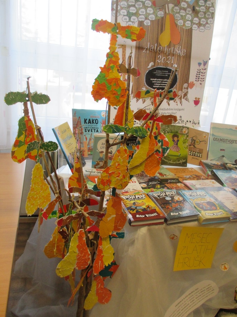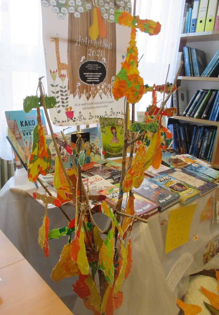 V šolski knjižnici smo pripravili razstavo ZLATIH HRUŠK 2021.