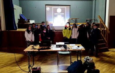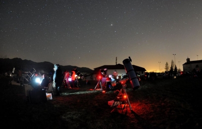 Ob osmih zvečer se je naša druščina astronomov (izbirni predmet Sonce, Luna, Zemlja) odpeljala z Dobrovega proti Trnovem pri Gorici. Srečno smo prispeli, a čakalo nas je presenečenje: huda burja. Brrrrrrrrrr, res je zeblo!