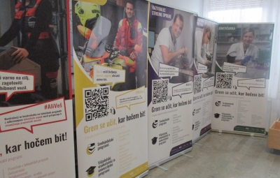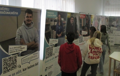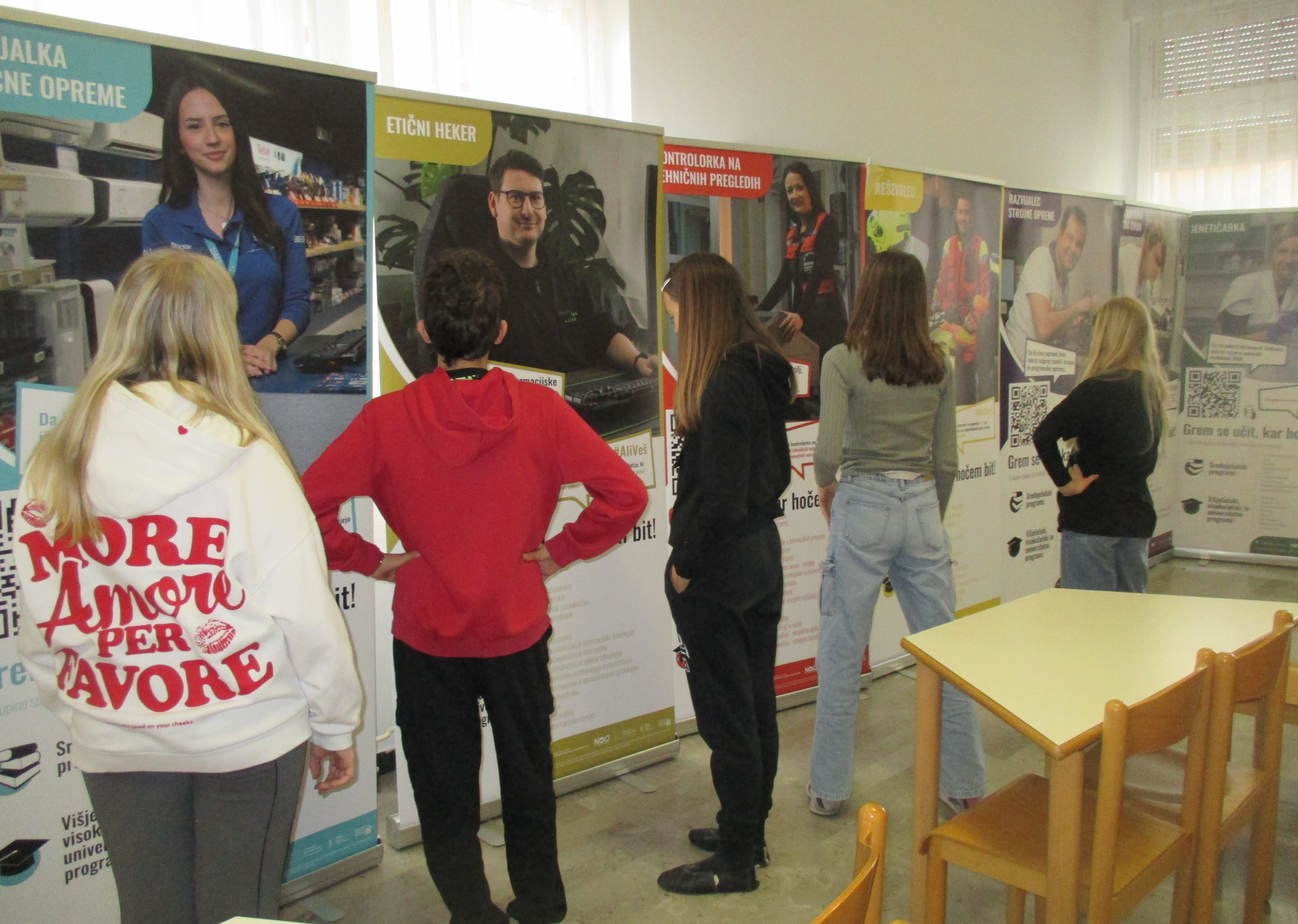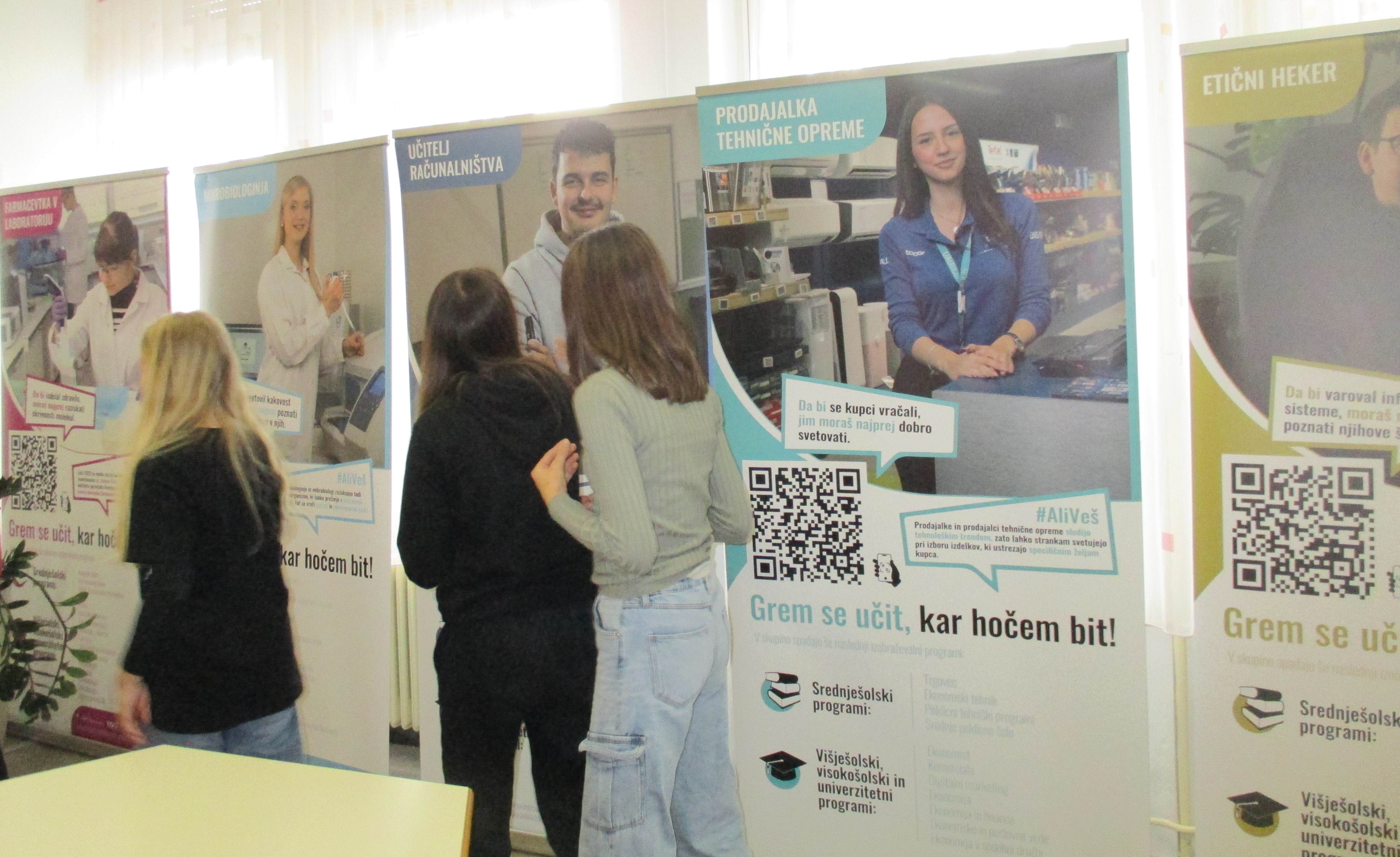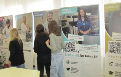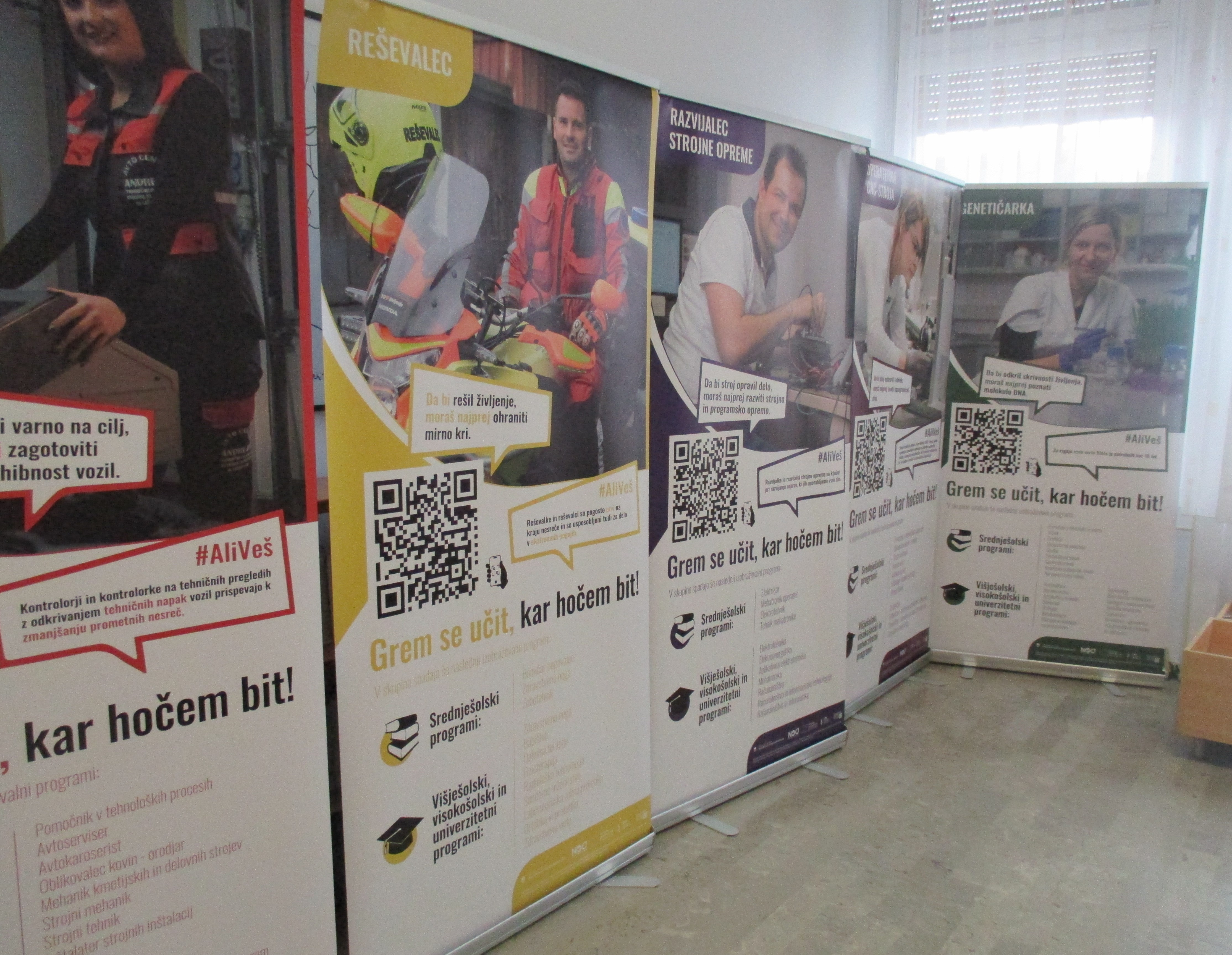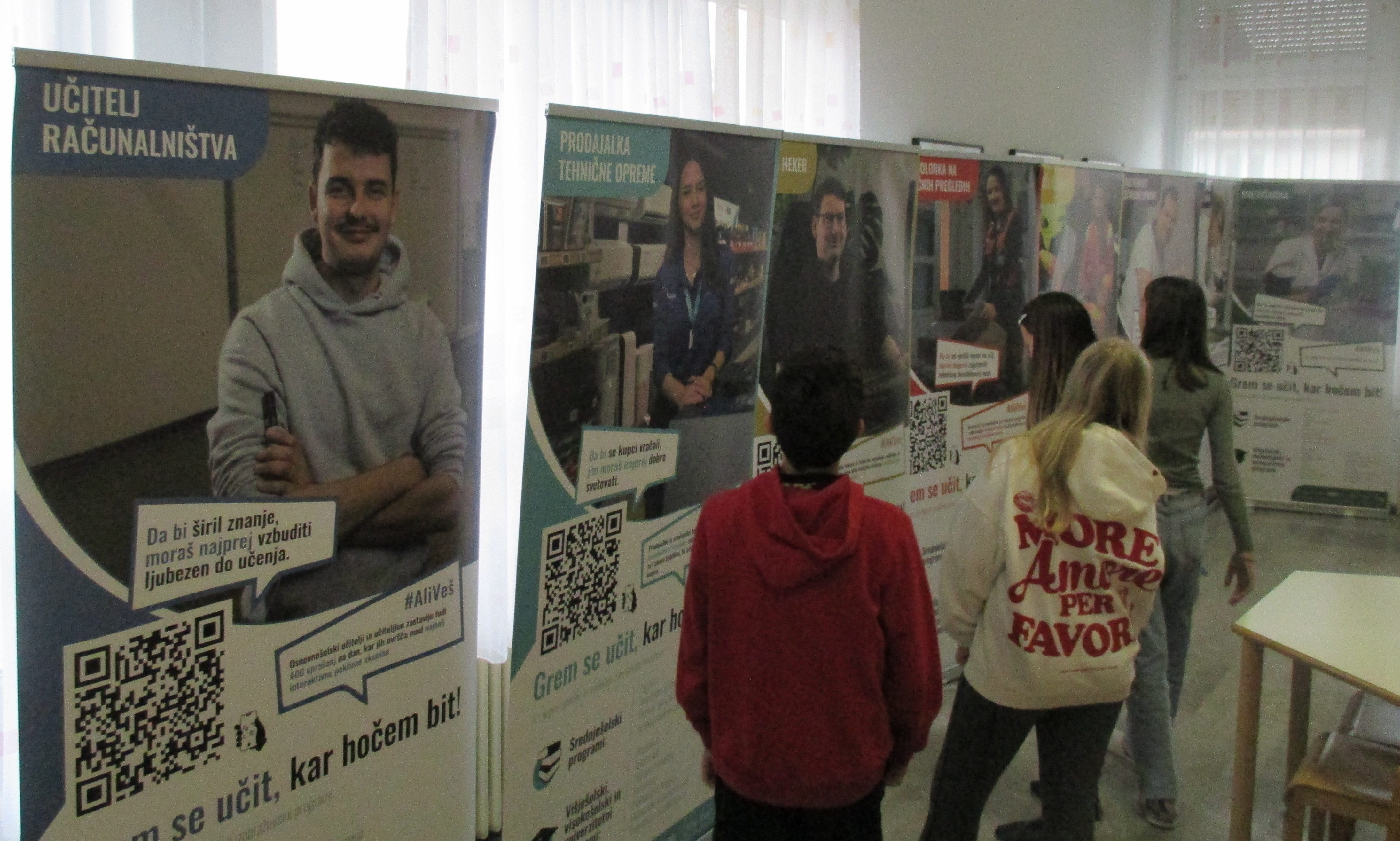 Na šoli smo gostili potujočo razstavo "Moj poklic prihodnosti", ki je bila primerna za učence 8. in 9. razredov, ki se odločajo o nadaljnjem šolanju, zanimiva pa je bila tudi za ostale učence. Digitalna verzija razstave je dostopna na https://www.mojaizbira.si/razstava .