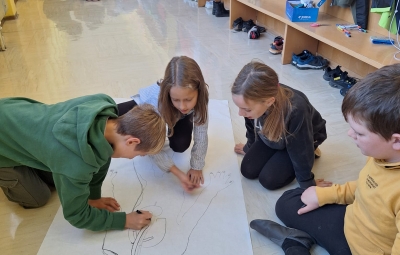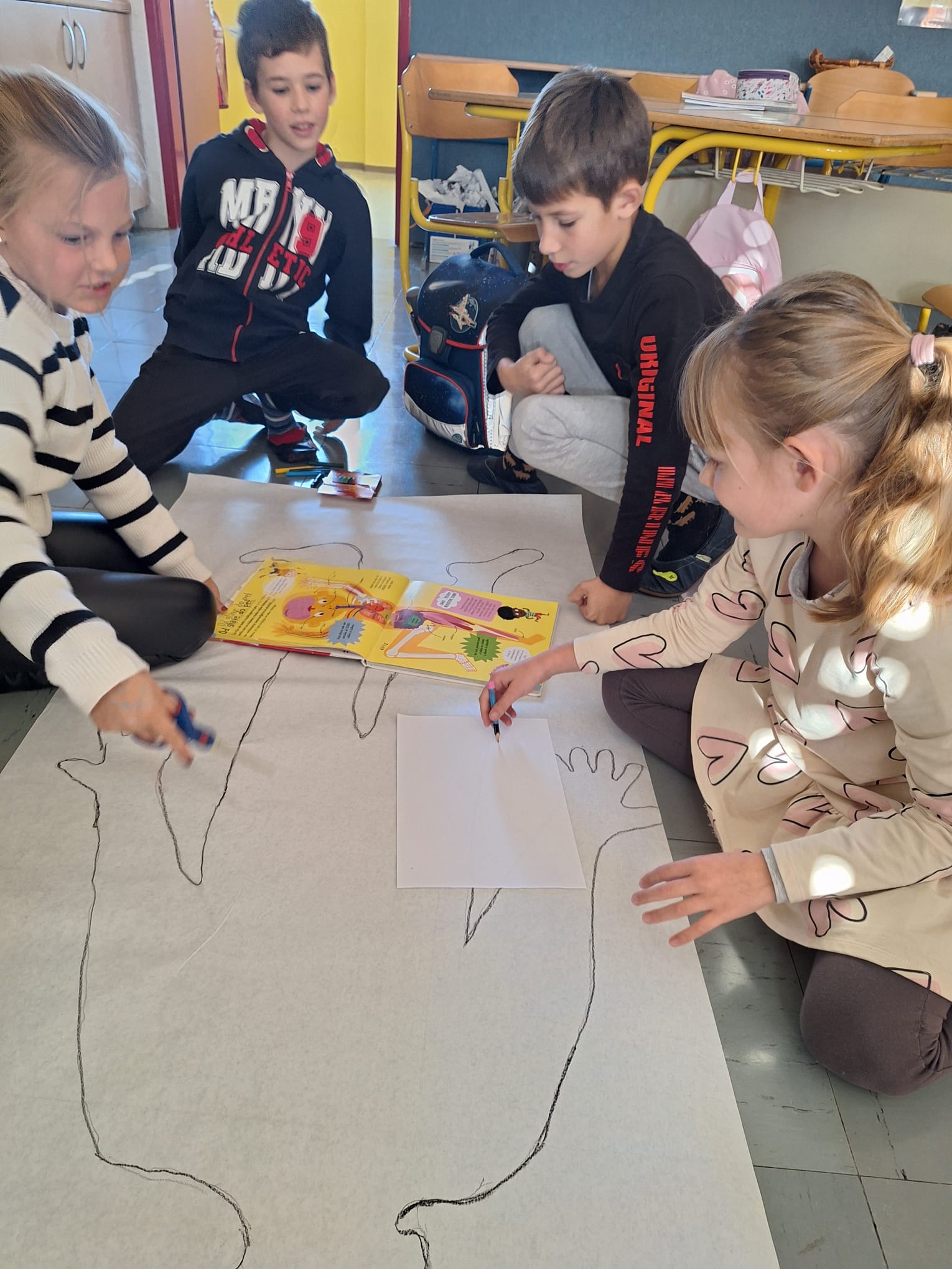 Četrtošolci smo danes imeli naravoslovni dan Raziskujem človeško telo in čutila.