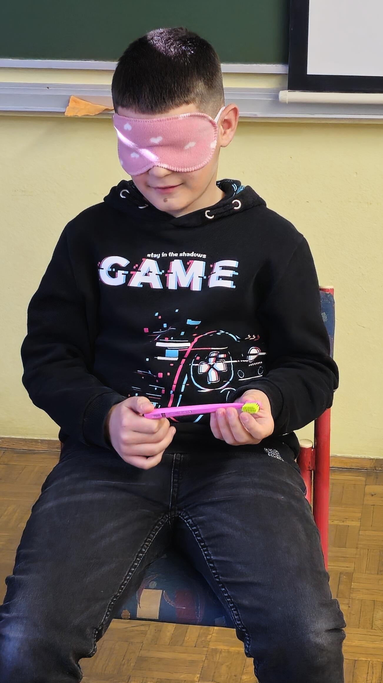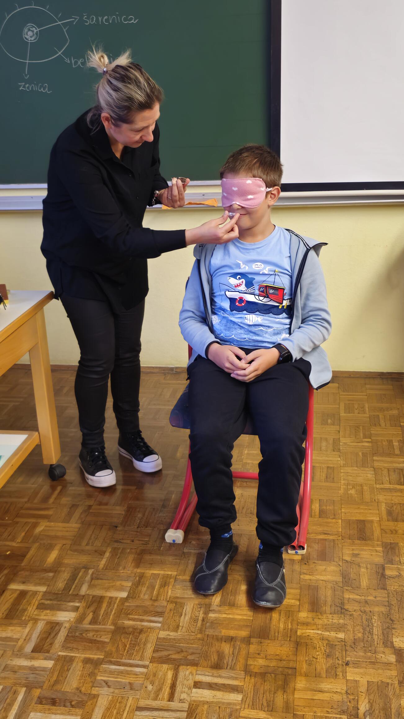 Obiskala nas je medicinska sestra, s pomočjo katere smo ponovili vse, kar smo se o človeškem telesu že naučili pri urah naravoslovja. Skozi igro smo krepili svoja dva čuta - tip in voh. Zanimivo pa se je bilo preizkusiti tudi v hoji z belo palico in spoznati Brailllovo pisavo.