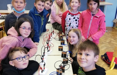 Četrtošolci smo se danes pogovarjali o elektriki, prevodnikih in izolatorjih, različnih vezavah. Učili smo se s pomočjo poskusov.