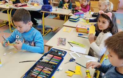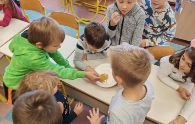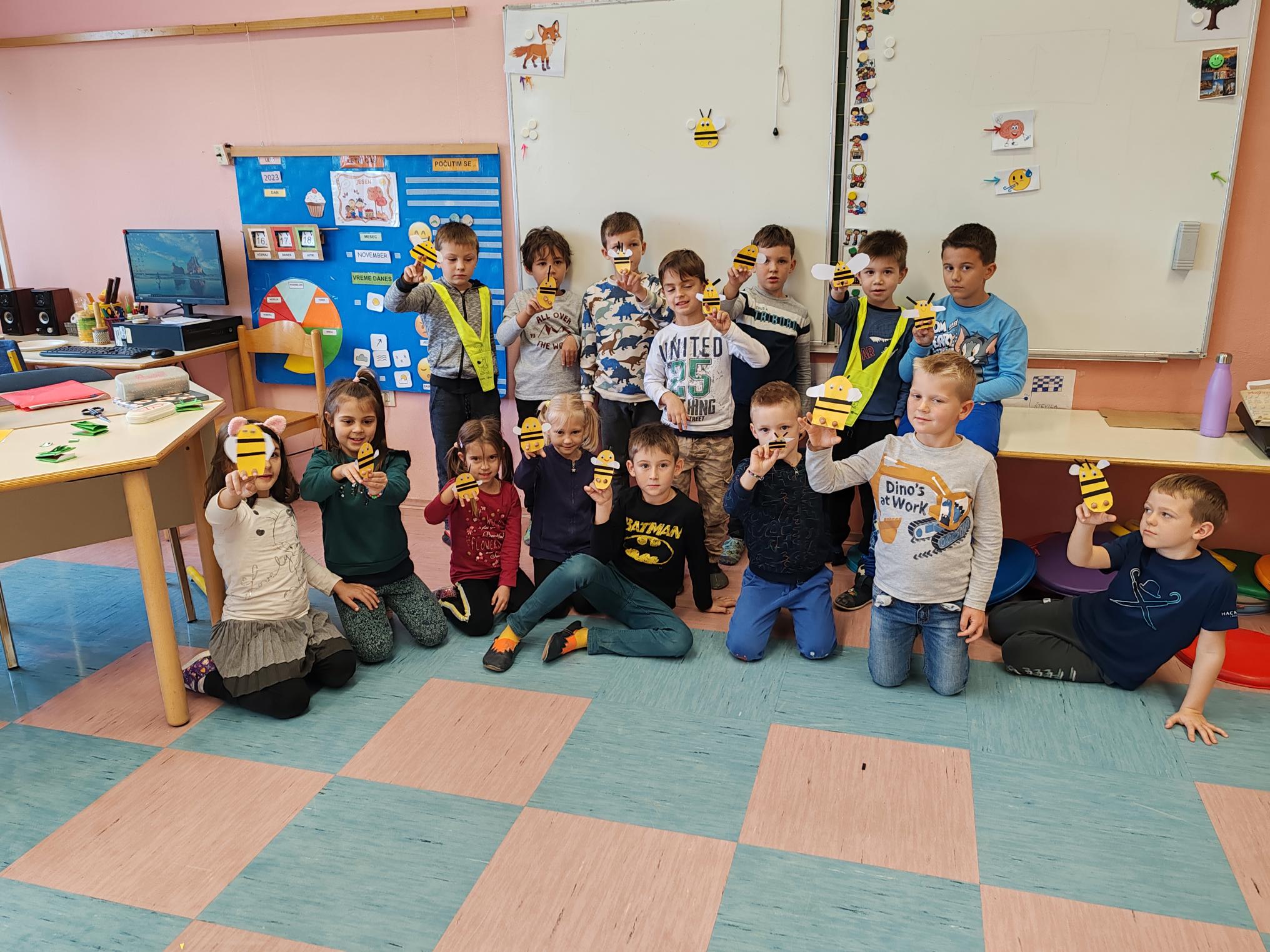 Ta sladki med smo tudi prvošolci okusili na Tradicionalnem slovenskem zajtrku. S polnimi želodčki smo se vrnili v razred, kjer smo gostili čebelarja g. Oskarja Kristančiča. Po okušanju cvetnega prahu in poslušanju pravljice, je sledilo ustvarjanje čebelic iz papirja ter igre spomin. Kasneje smo si ogledali še postopek priprave kruha ter zaplesali otroške plese. Dan je minil kot bi mignil ter v nas pustil lepe spomine.
