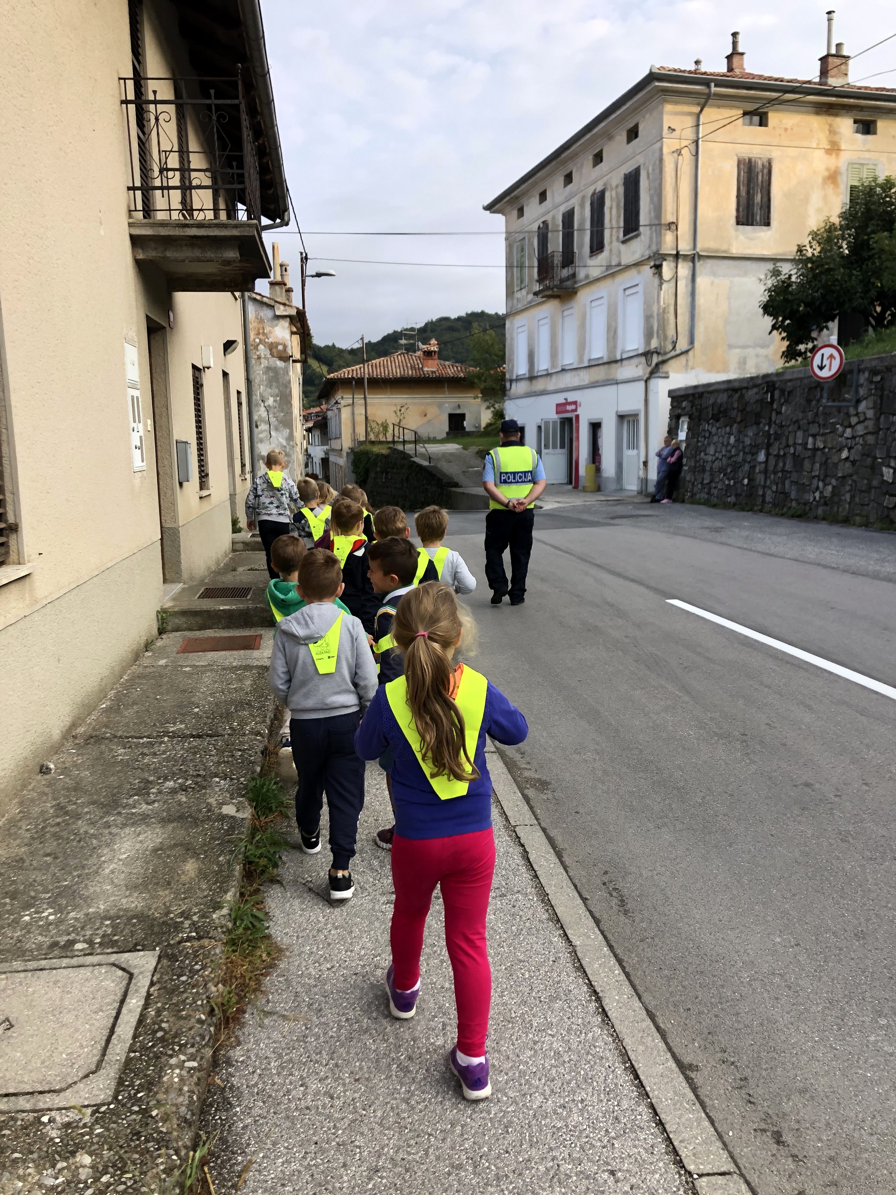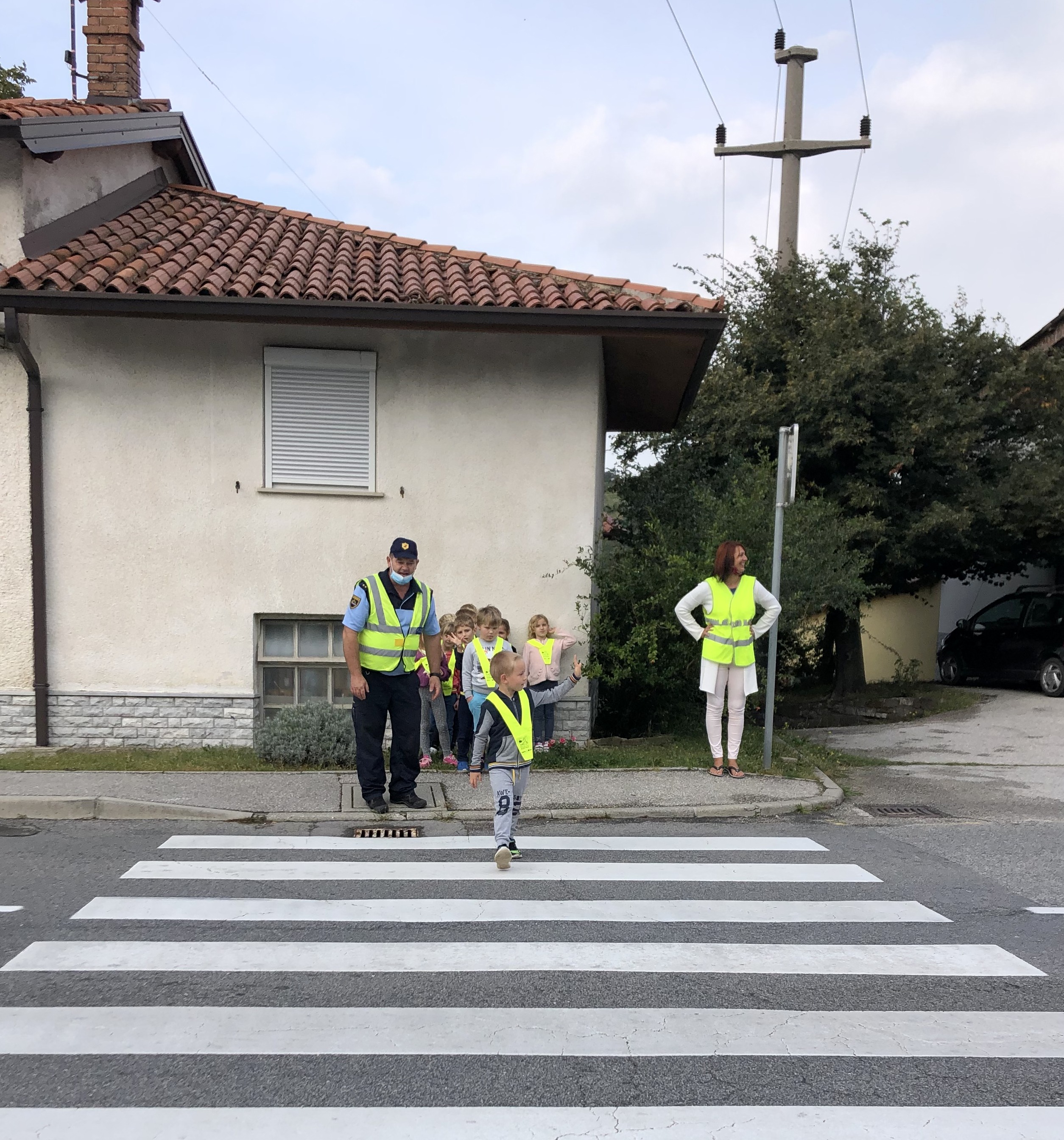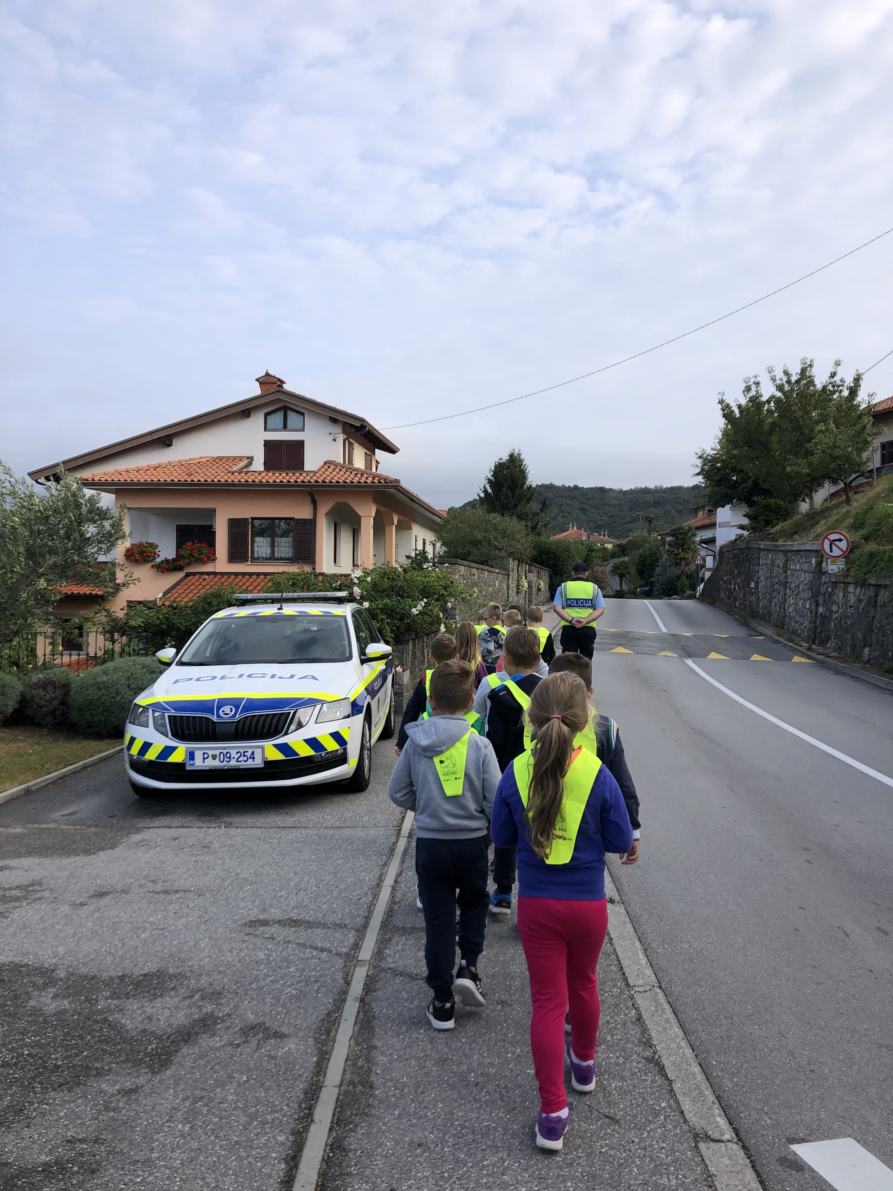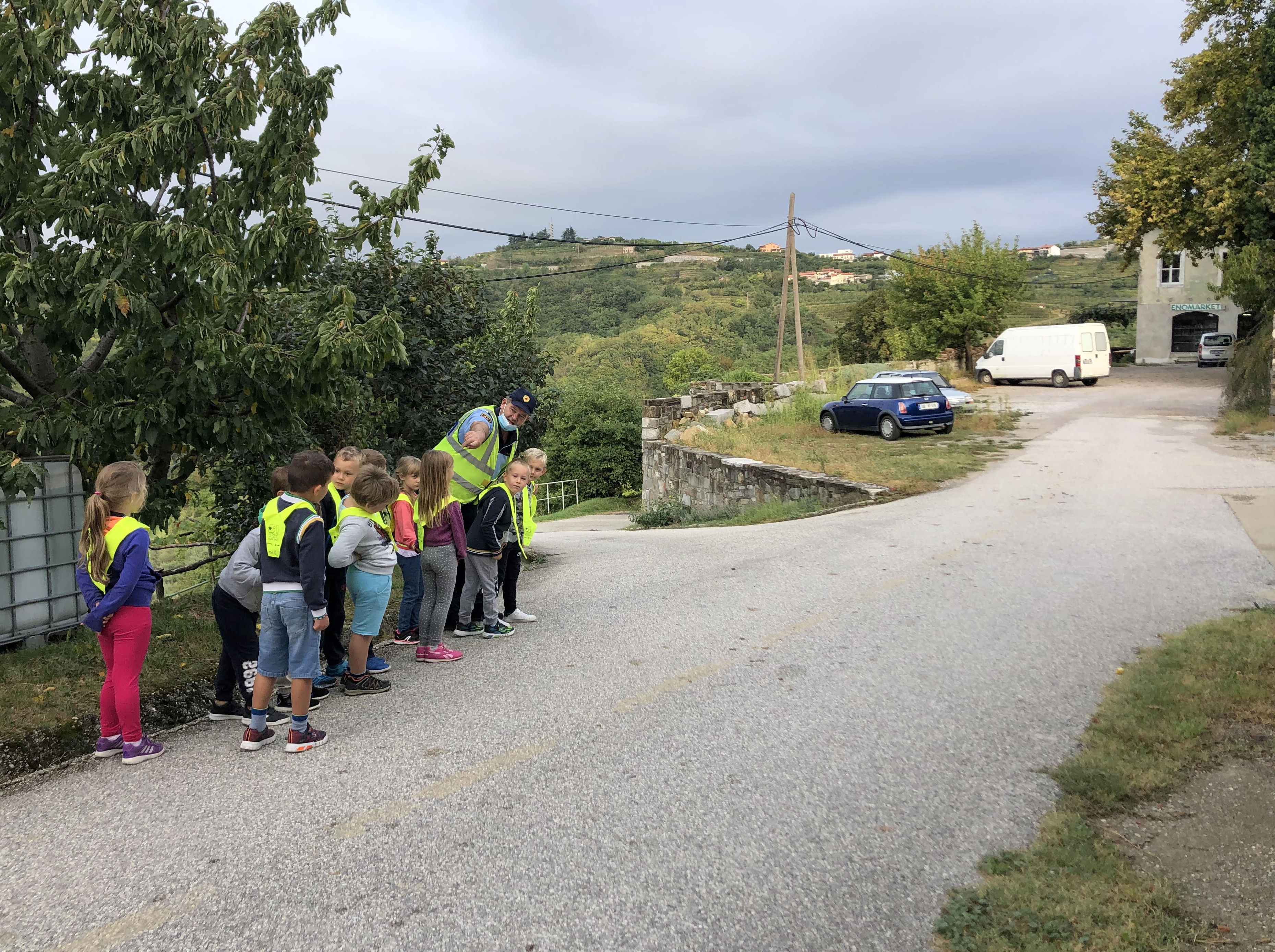 Danes je prvošolce obiskal policist s policijske postaje Nova Gorica. Pogovarjali smo se o prometni varnosti. Opozoril nas je na nevarnosti, ki prežijo na pešce in poudaril pravilno in varno obnašanje. Odpravili smo se tudi na učni sprehod v okolici šole, kjer je policist opozoril na nevarne odseke na poti v šolo in ponazoril pravilno prečkanje ceste. Nato smo se tudi sami večkrat preizkusili v prečkanju prehoda za pešce. Naučili smo se, da moramo biti v prometu zelo previdni ter za svojo vidnost vsak dan nositi rumeno rutico.