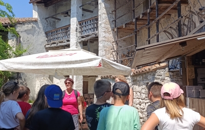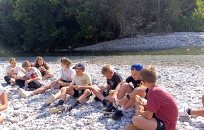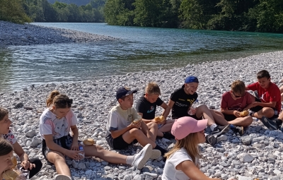 Učenci 5.c razreda naše podružnične šole smo preživeli nepozaben tabor v bližini reke Nadiže. Pot do tja smo si popestrili z zanimivimi postanki – ustavili smo se na sotočju Soče in Tolminke, si ogledali Nemško kostnico, muzejsko zbirko Mazora ter obnovljeno strnjeno naselje Breginj.