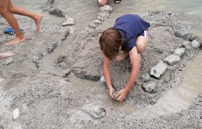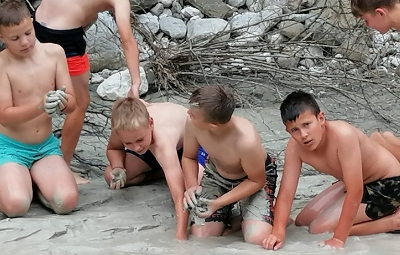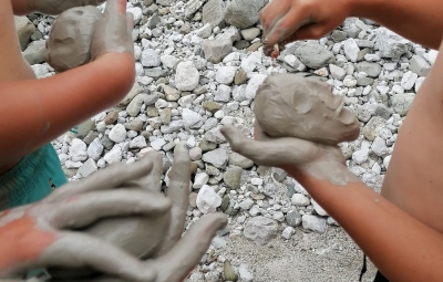 Naslednji dan smo osvežitev poiskali ob reki Nadiži, ustvarjalnost pa izrazili pri delu z glino. Tabor smo zaključili s prijetnim programom za starše.