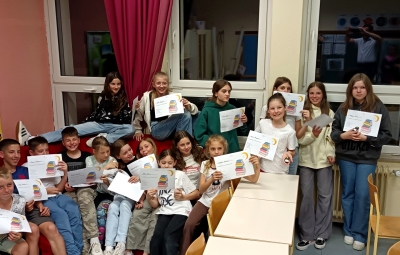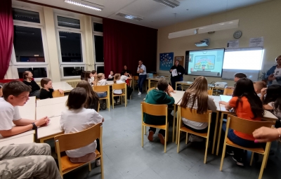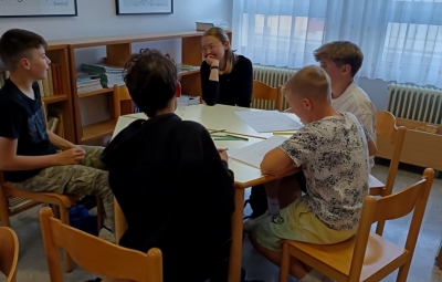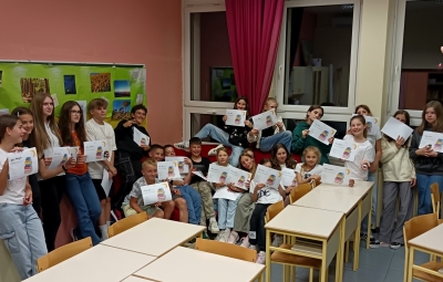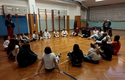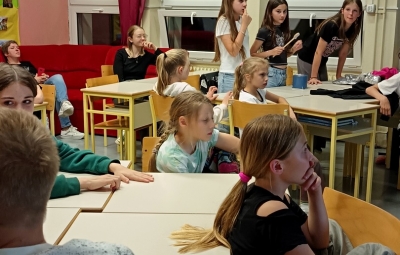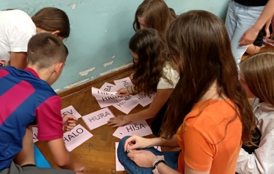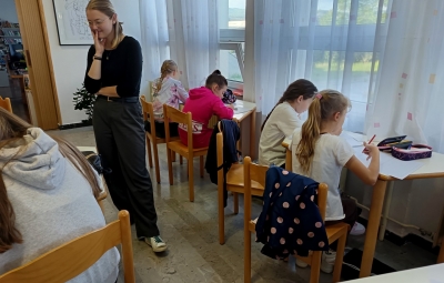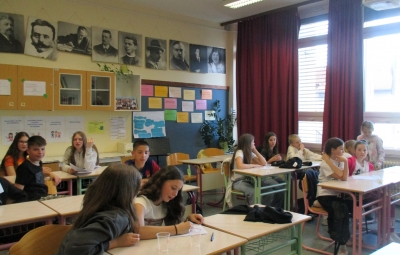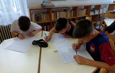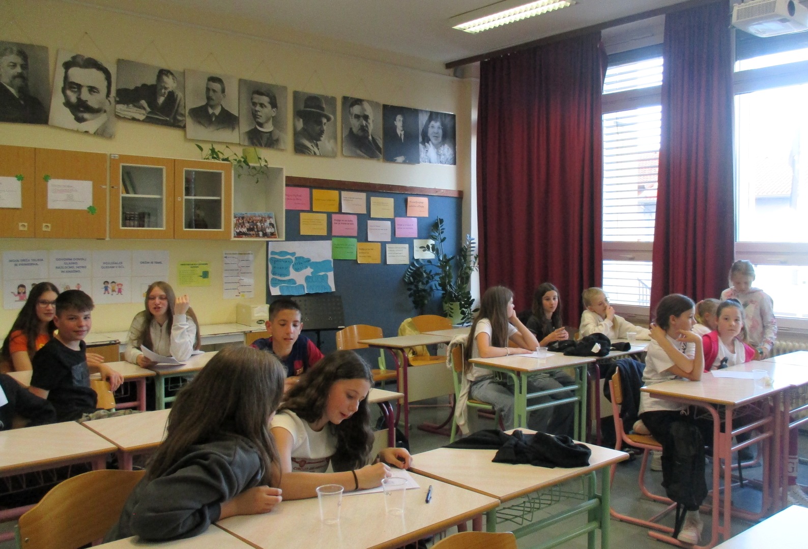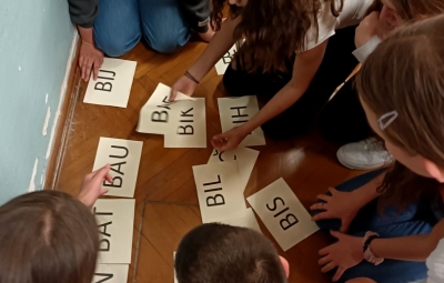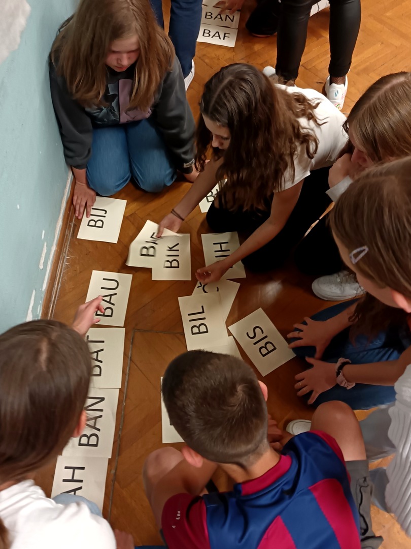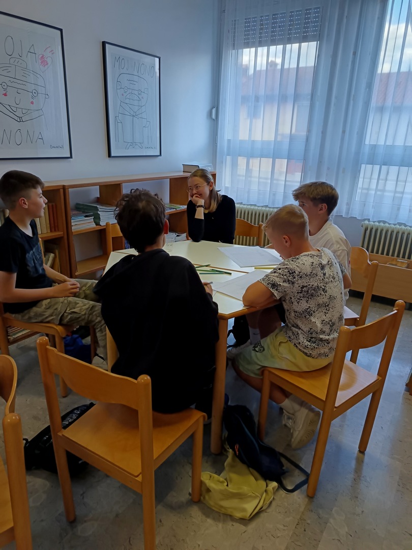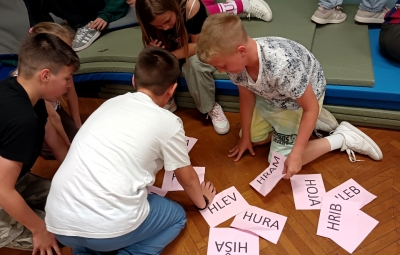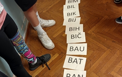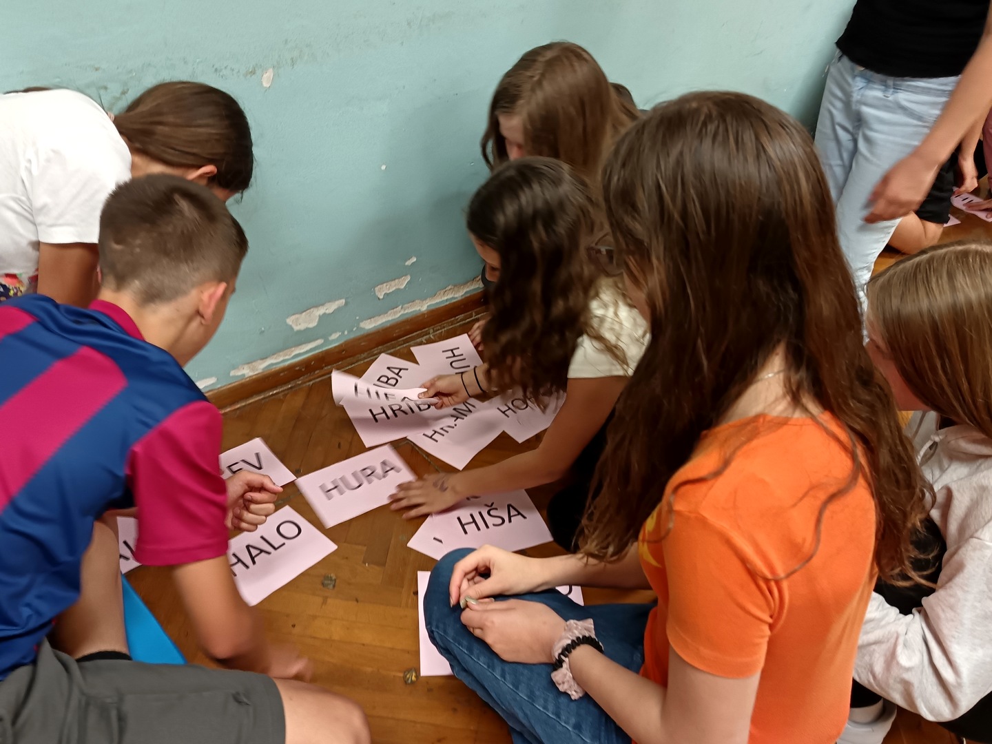 Po razdelitvi na skupine so sledile različne dejavnosti: likovna delavnica, v kateri smo v obliki stripa risali slovenske frazeme, in literarna delavnica, v kateri smo se preizkusili v hitrostnem branju, branju na različne načine in ustvarjanju besedil na določene črke.