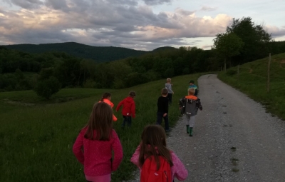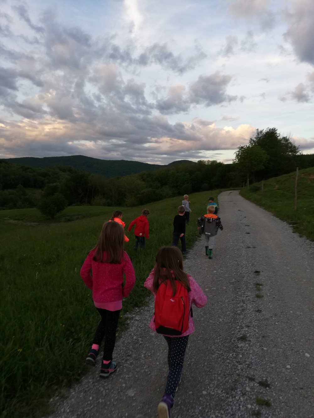 Med tem časom se je znočilo in končno je napočil čas, ki so ga otroci tako pričakovali. Prižgali smo svetilke in se vrnili proti izhodiščni točki. Na žalost ali srečo nismo srečali nobene živali, razen male miške. Kljub temu pa so otroci dejali, da je bil to najboljši pohod. »Ta pohod je res zakon«