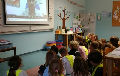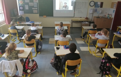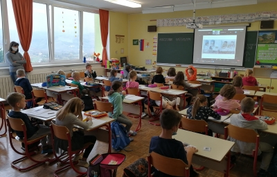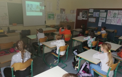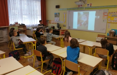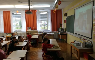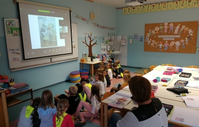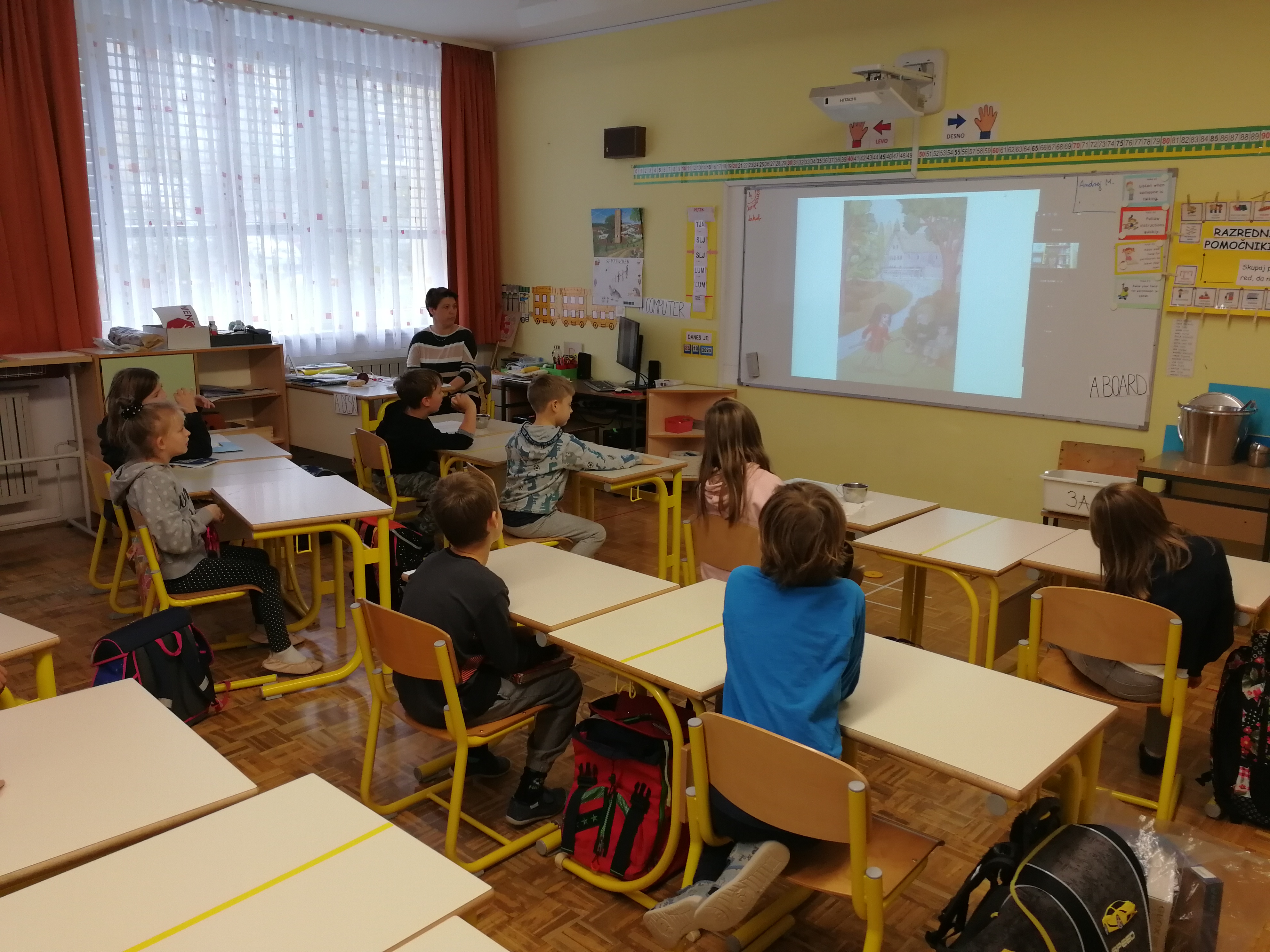 Učenci od 1. do 5. razreda smo se 3. šolsko uro povezali preko ZOOM-a. Knjižničarka