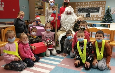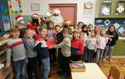 Na prvi dan zime je učence 1. triade presenetil Dedek Mraz. Učenci so se razveselili novih igrač.