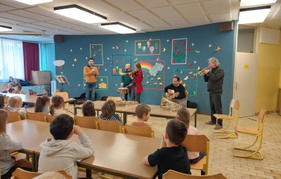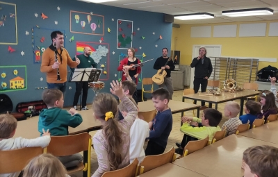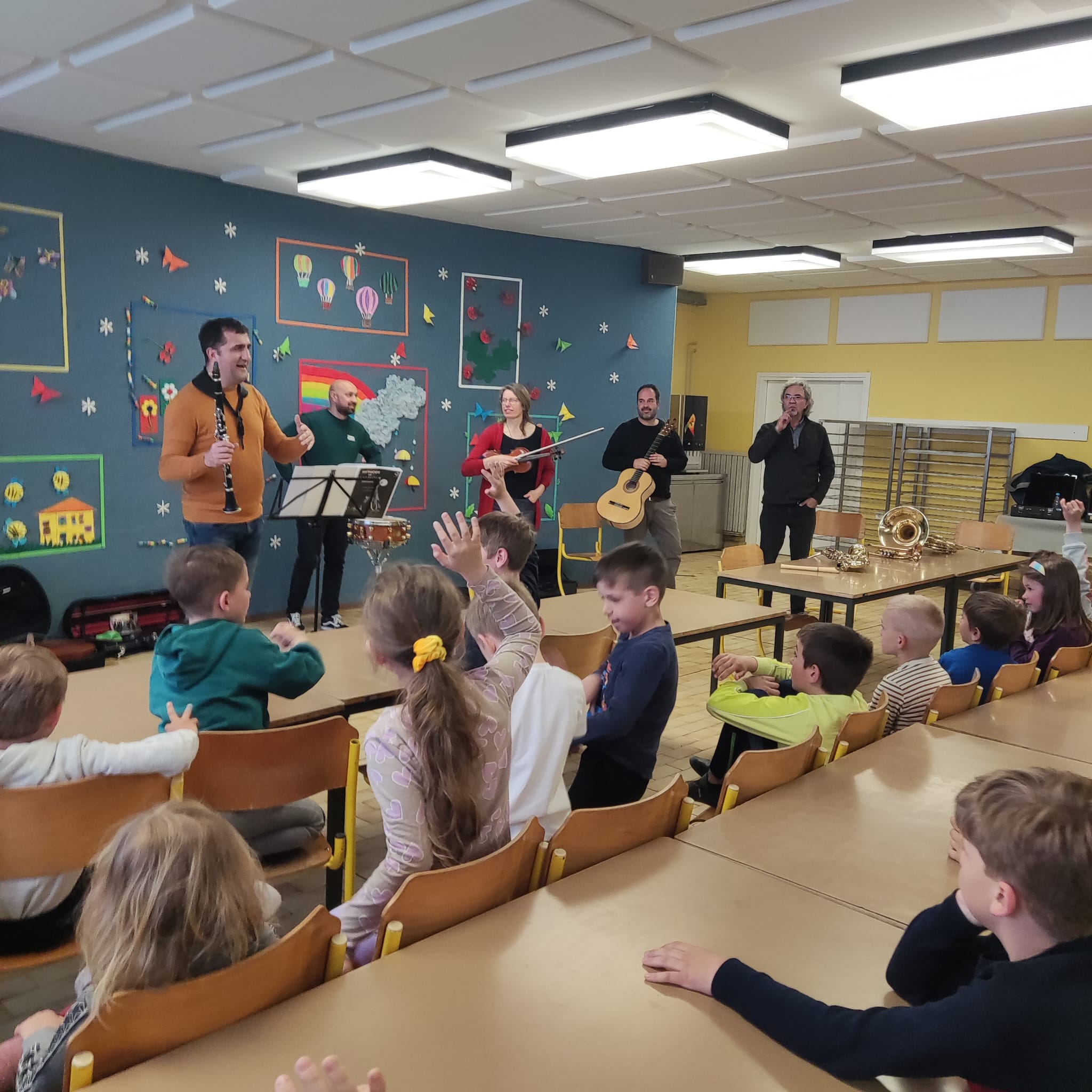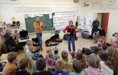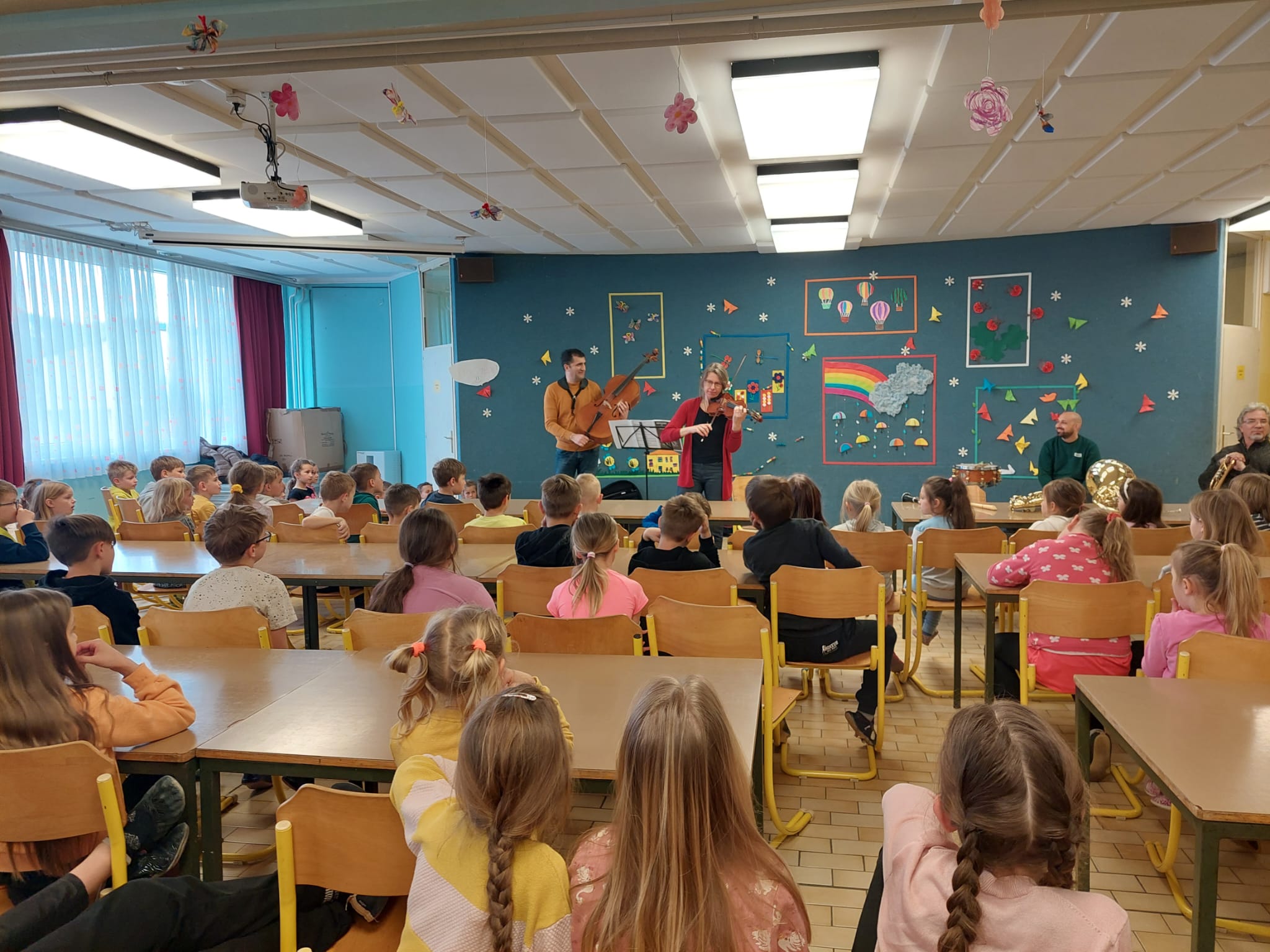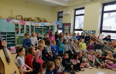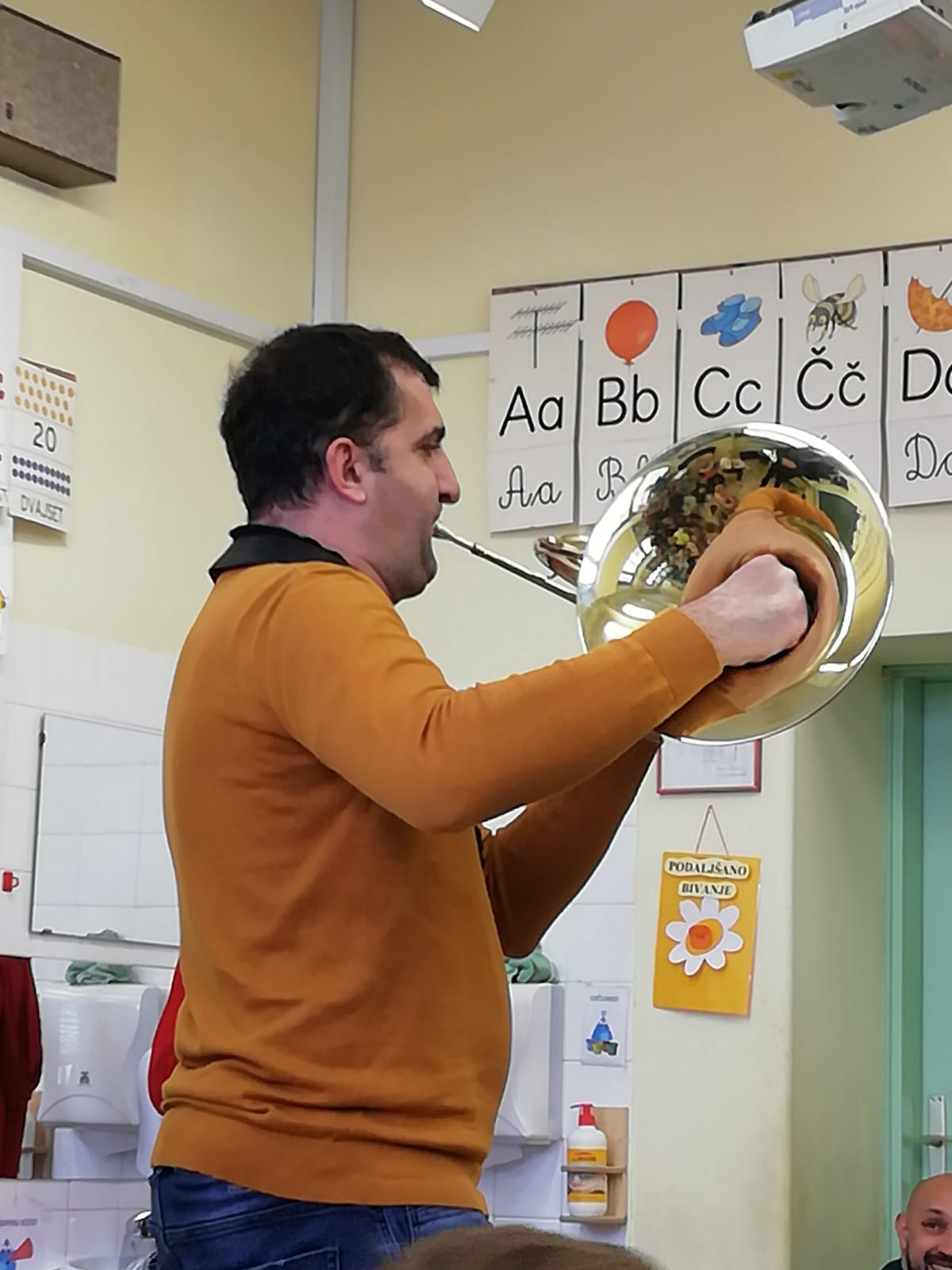 Za učenci prve triade je nekoliko drugačen dan. V goste so prišli učitelji iz glasbene šole Nova Gorica. Pripravili so nam glasbeni program, v katerem smo spoznali različna glasbila ter prisluhnili glasbi. Nekateri izmed nas že pridno obiskujejo glasbeno šolo, v nekaterih pa se je prav danes zbudilo zanimanje za enega od prikazanih instrumentov.