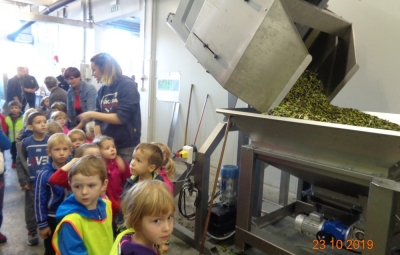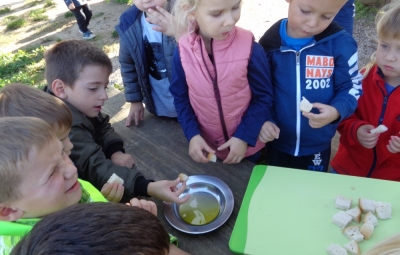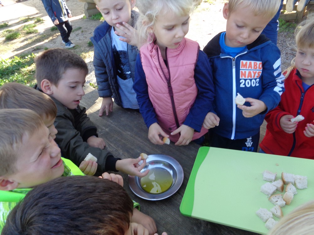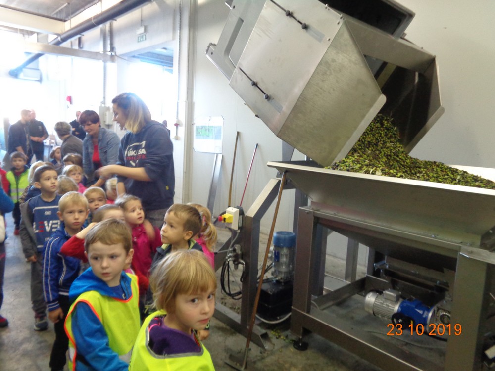 Otroci iz skupin Avti in Samorogi so si ogledali briško torkljo in poizkusili oljčno olje.