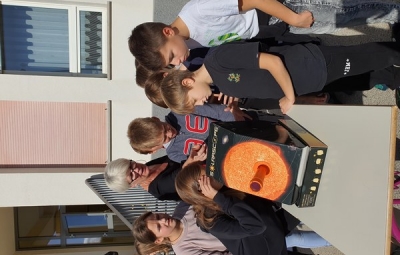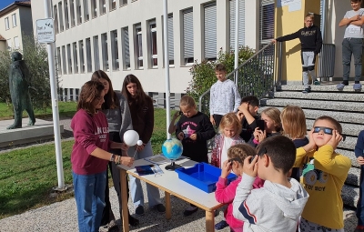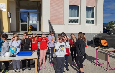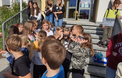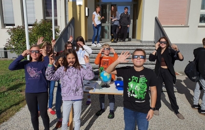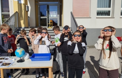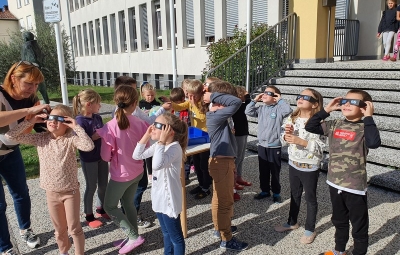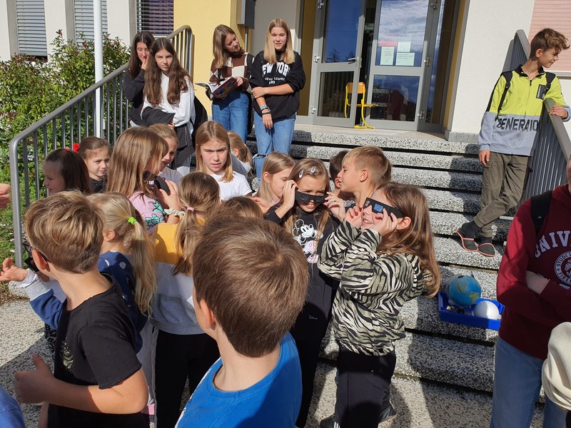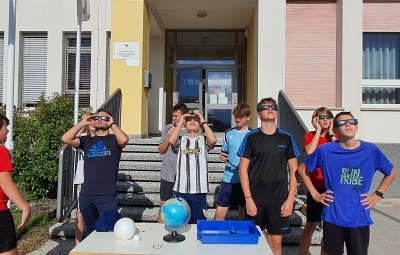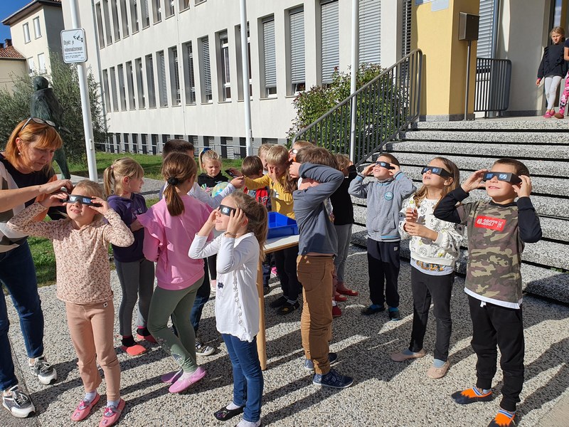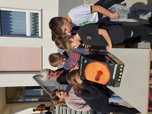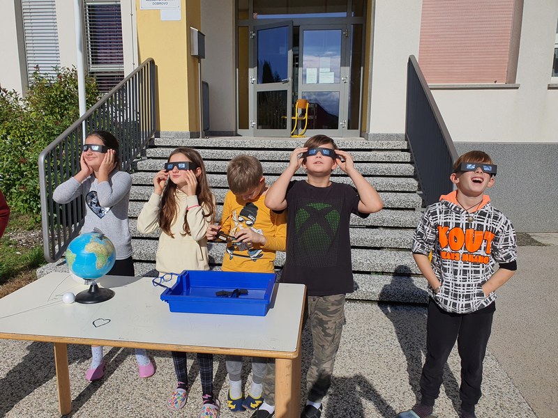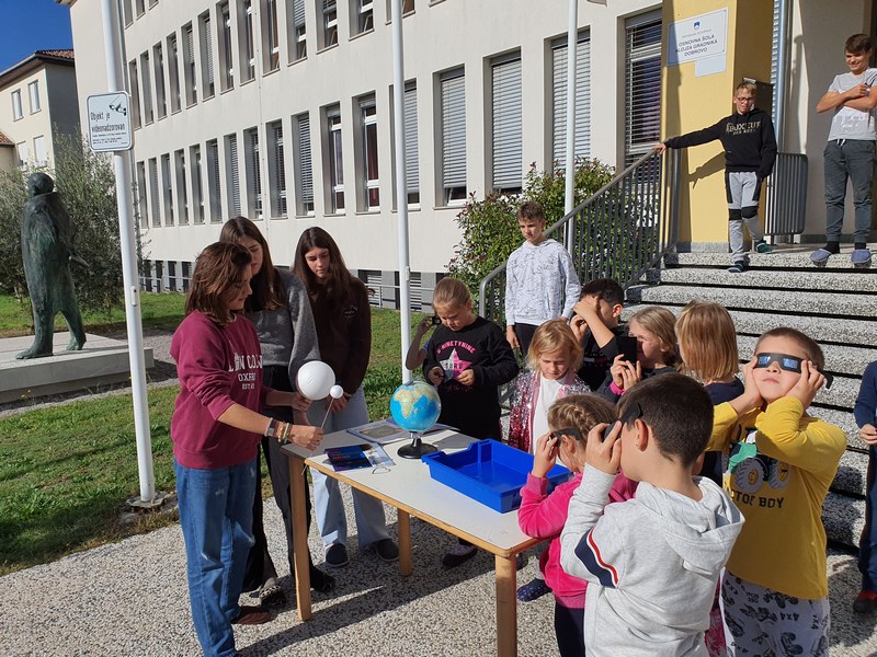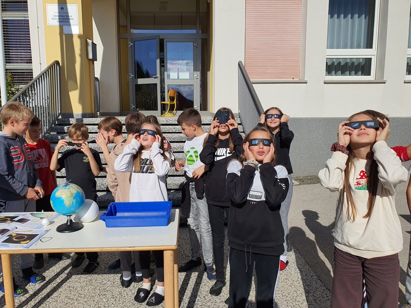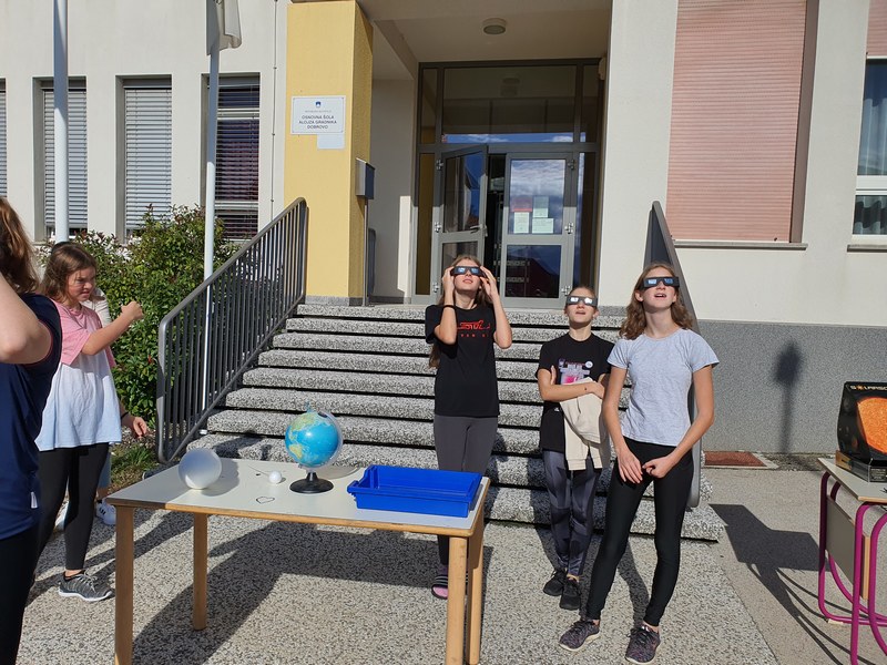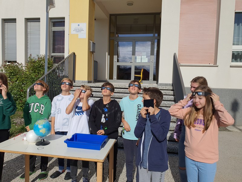 Ob tej priložnosti smo učenci izbirnega predmeta Daljnogledi in planeti pripravili opazovanje za učence naše šole. Pojav smo opazovali s posebnimi očali s filtri, sliko sonca pa smo tudi projecirali na zaslon.