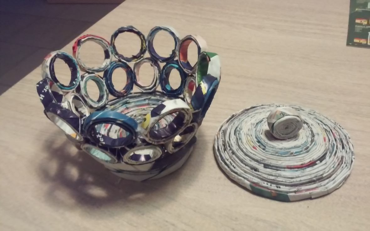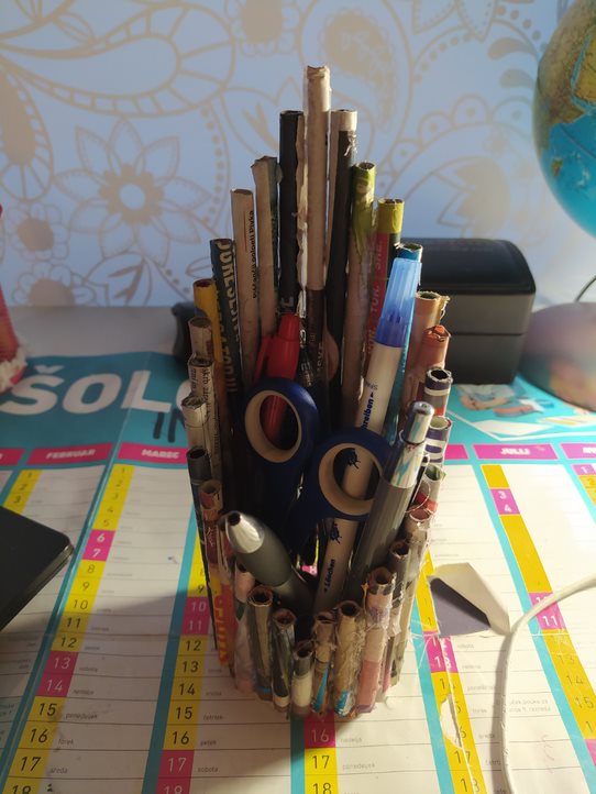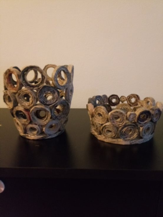 Učenci 6. razredov so v okviru predmeta tehnika in tehnologija še v času izobraževanja na daljavo izdelovali okrasne pa tudi uporabne posode iz papirja. Nastale so zanimive sklede, košarice, pladnji, okrasni lončki za lončnice ali pisarniške pripomočke. Vsem pohvala za trud in zanimive ideje.