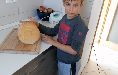 Učenci 5. razreda so se z veseljem lotili praznične peke. Zamesili so testo in oblikovali hlebce, štruce, pletenice, vence, mafine... Nekateri so recepte povzeli po starih navadah in zamesli kruh iz droži. Droži so divji kvas, ki ga naredimo sami iz vode in ržene moke. Čestitke vsem za krasne kuharske mojstrovine.