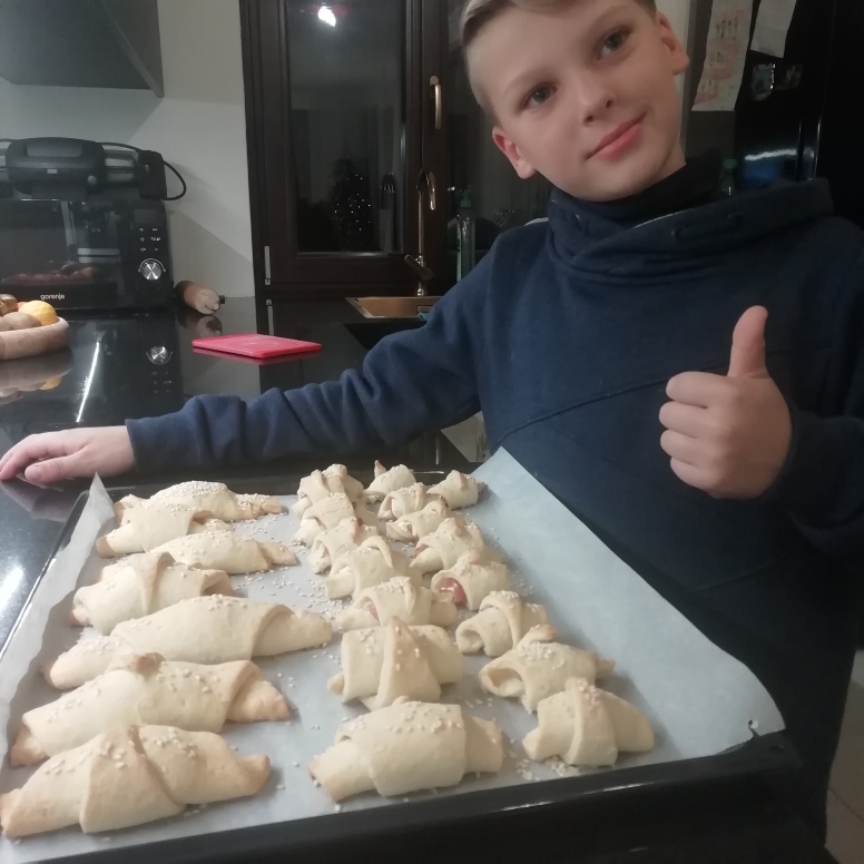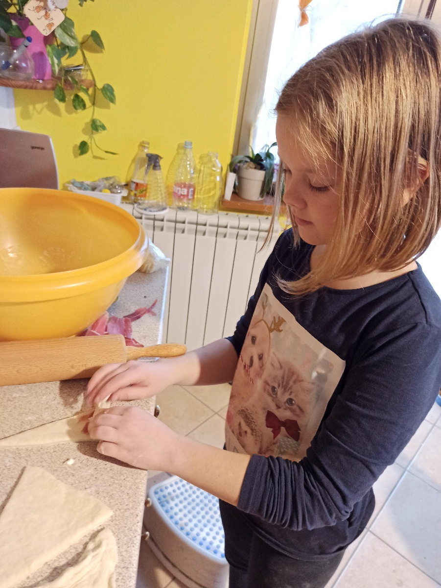 Učenci 5.c so v okviru predprazničnega projektnega tedna pekli rogljičke. Z veseljem so si zavihali rokave in se spretno sukali po domači kuhinji. Pravijo, da so bili rogljički okusni in da jih bodo še večkrat pripravili. Bi poskusili tudi vi?