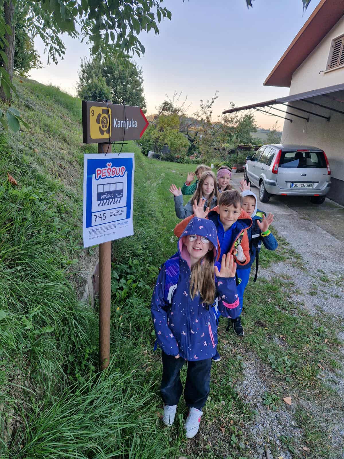 V sklopu tedna mobilnosti se je porodila ideja o izvedbi PEŠBUS-a. Najprej smo si zadali cilj, da to poskusimo na podružnični šoli Kojsko. PEŠBUS je oblika organizirane spremljane hoje v šolo. Načrtovali smo dve relaciji ter označili PEŠBUS postaje z urnikom odhodov.