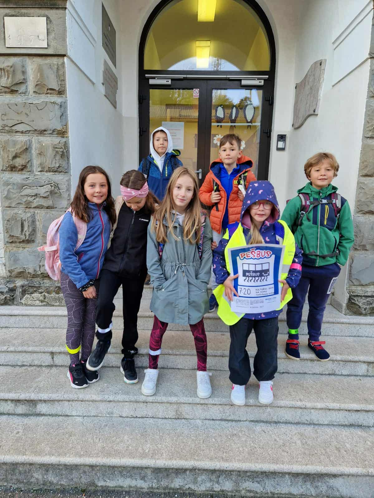 Ponosni smo na uspešno prvo izvedbo, saj se je PEŠBUS-u priključilo kar 11 otrok, 1 starš in celo 2 vrtčevska otroka.