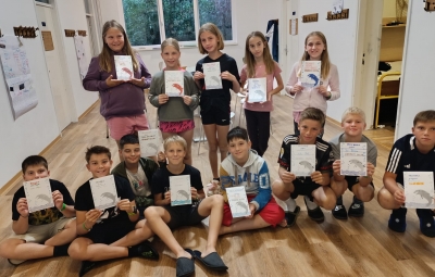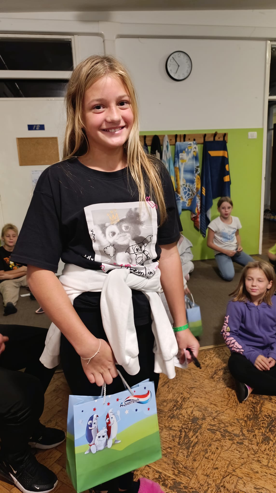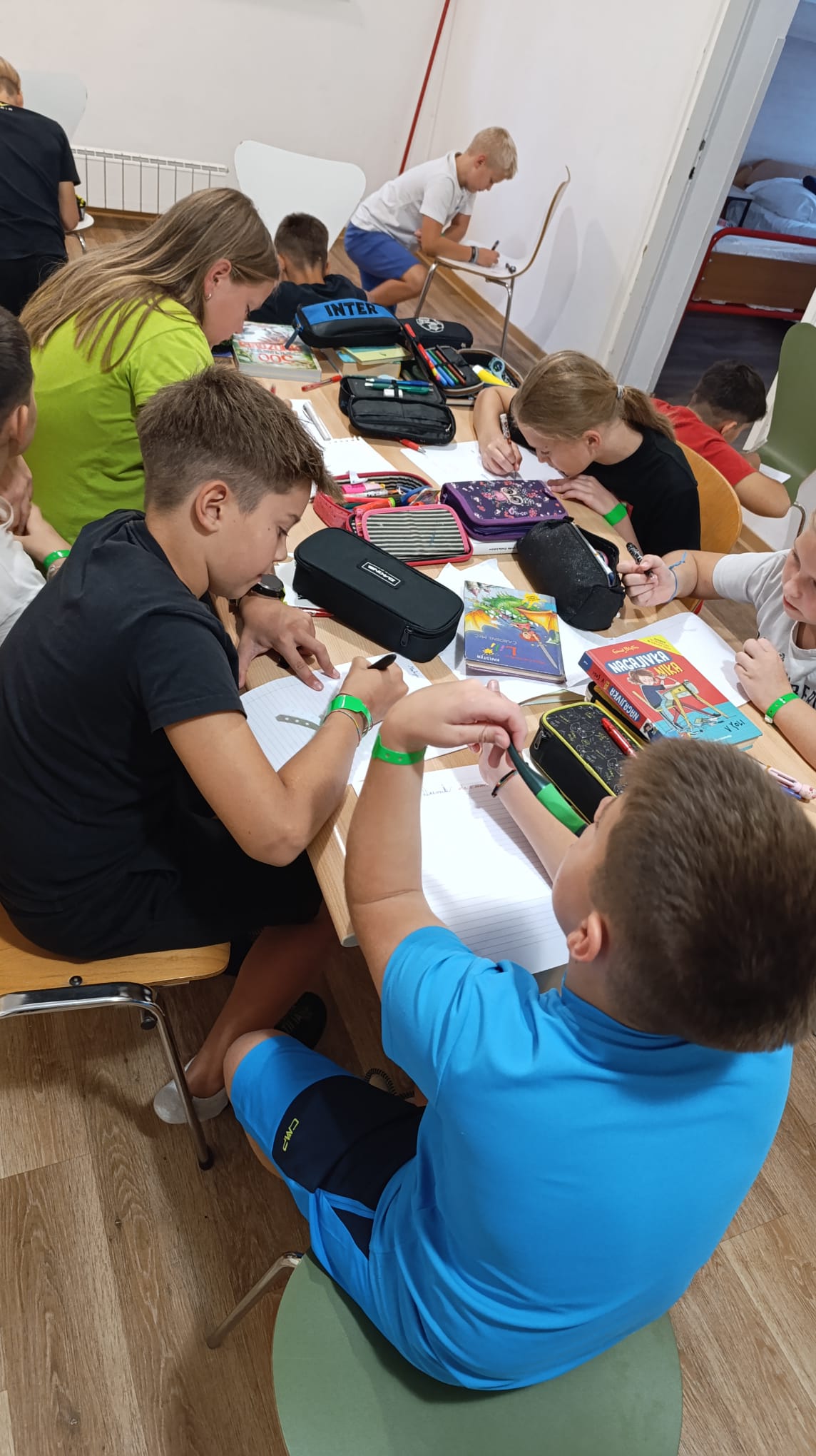 Dopoldne je potekalo kot ponavadi, popoldne pa smo se pomerili v štirih igrah – nogometu, odbojki, med dvema ognjema in lokostrelstvu. Tokrat so se skupine zamenjale. Na plavanju je potekalo preverjanje znanja za delfine. Prav vsi smo osvojili nekaj in bili na koncu zelo ponosni. Zvečer je bil na vrsti Rtič ima talent, kjer smo lahko svoje talente predstavili pred ostalimi. Ob koncu smo še lahko vsi skupaj zaplesali. Jutri pa se že vračamo domov. Škoda!