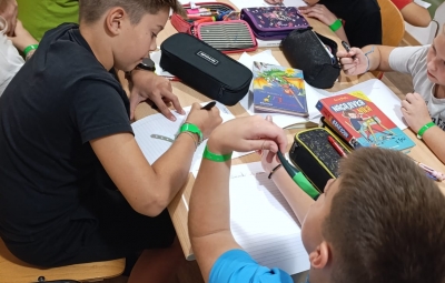 Tretji dan je bil poln športa in zabave. Po kosilu smo se razdelili v štiri skupine in se pomerili v različnih igrah – igrali smo nogomet, odbojko, med dvema ognjema in preizkusili tudi lokostrelstvo. Vse skupine so se potrudile in uživale v gibanju na svežem zraku. Plavanje je bilo, kot vsak dan, del našega urnika. Zvečer pa nas je čakal še “Zasoljeni morski kviz”, kjer smo pokazali svoje znanje in tekmovalnost.