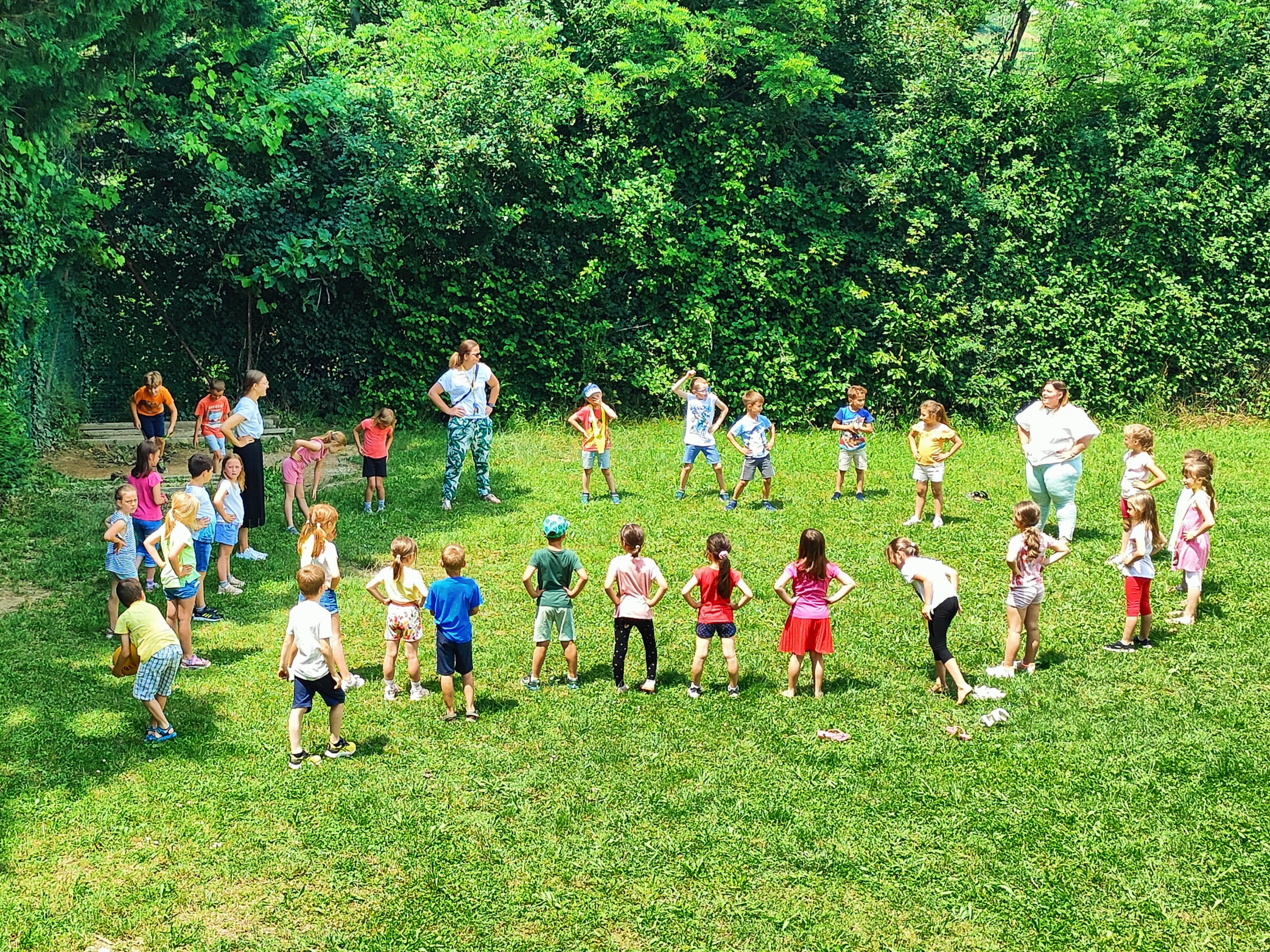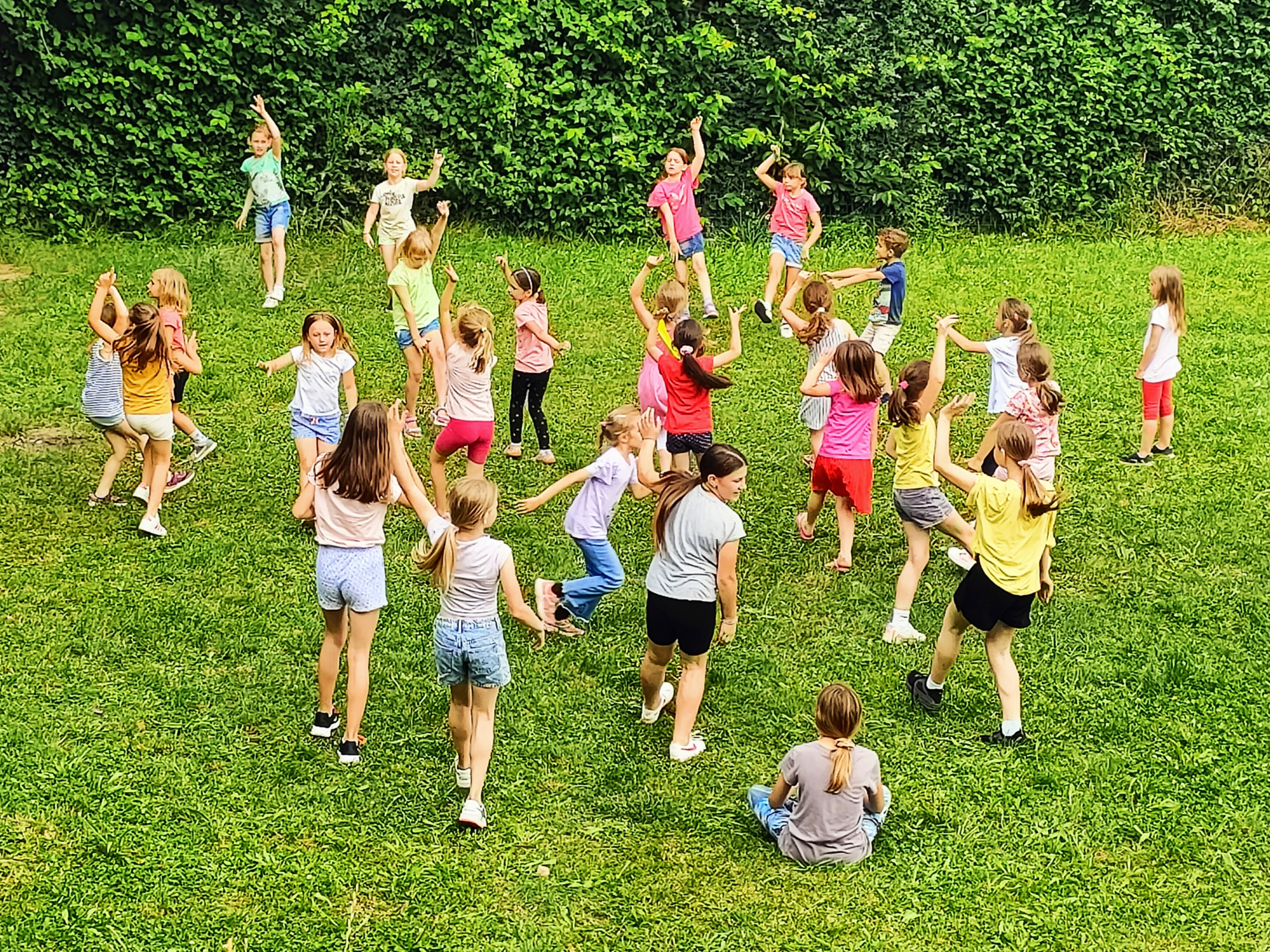 Današnji petek smo učenci podaljšanega bivanja preplesali. Za plesno animacijo so poskrebele učiteljice Tereza, Nika in Barbara. Naučile so nas nekaj novih plesnih korakov in bansov. Zelo smo se zabavali. Učiteljice so nam obljubile, da bomo s plesom nadaljevali tudi v naslednjem tednu.
