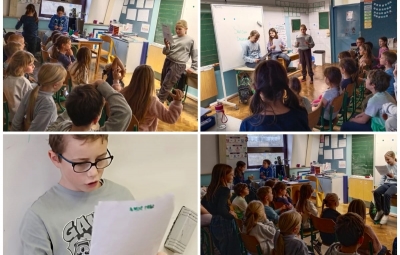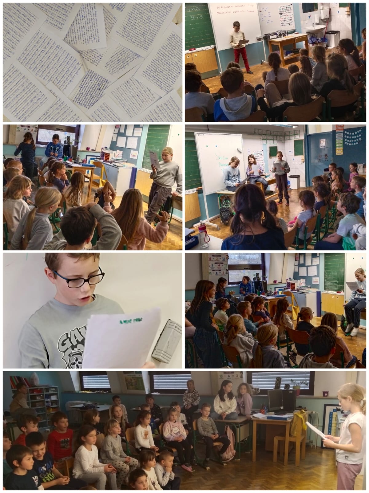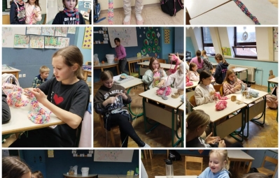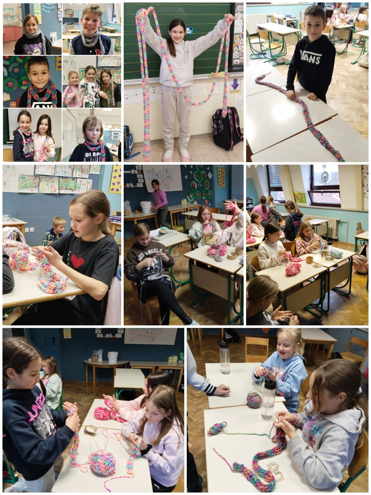 Na podružnici smo v 3.skupini podaljšanega bivanja v januarju pletli pisane šale in zanimive zgodbe. Ker nam je pletenje šlo dobro od rok, je marsikdo s šalom obdaril tudi družinske člane, z zgodbami, ki so nastajale pod našimi peresi, pa smo združili Mesec pisanja z roko in medgeneracijsko sodelovanje. Naše domiselne zgodbe smo namreč prebirali mlajšim učencem na šoli, ki so jim napeto prisluhnili.