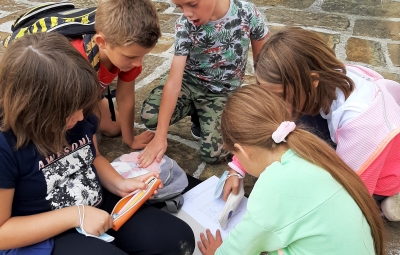 Na poti smo v skupinah reševali naloge in opazovali čudovito jesensko naravo.