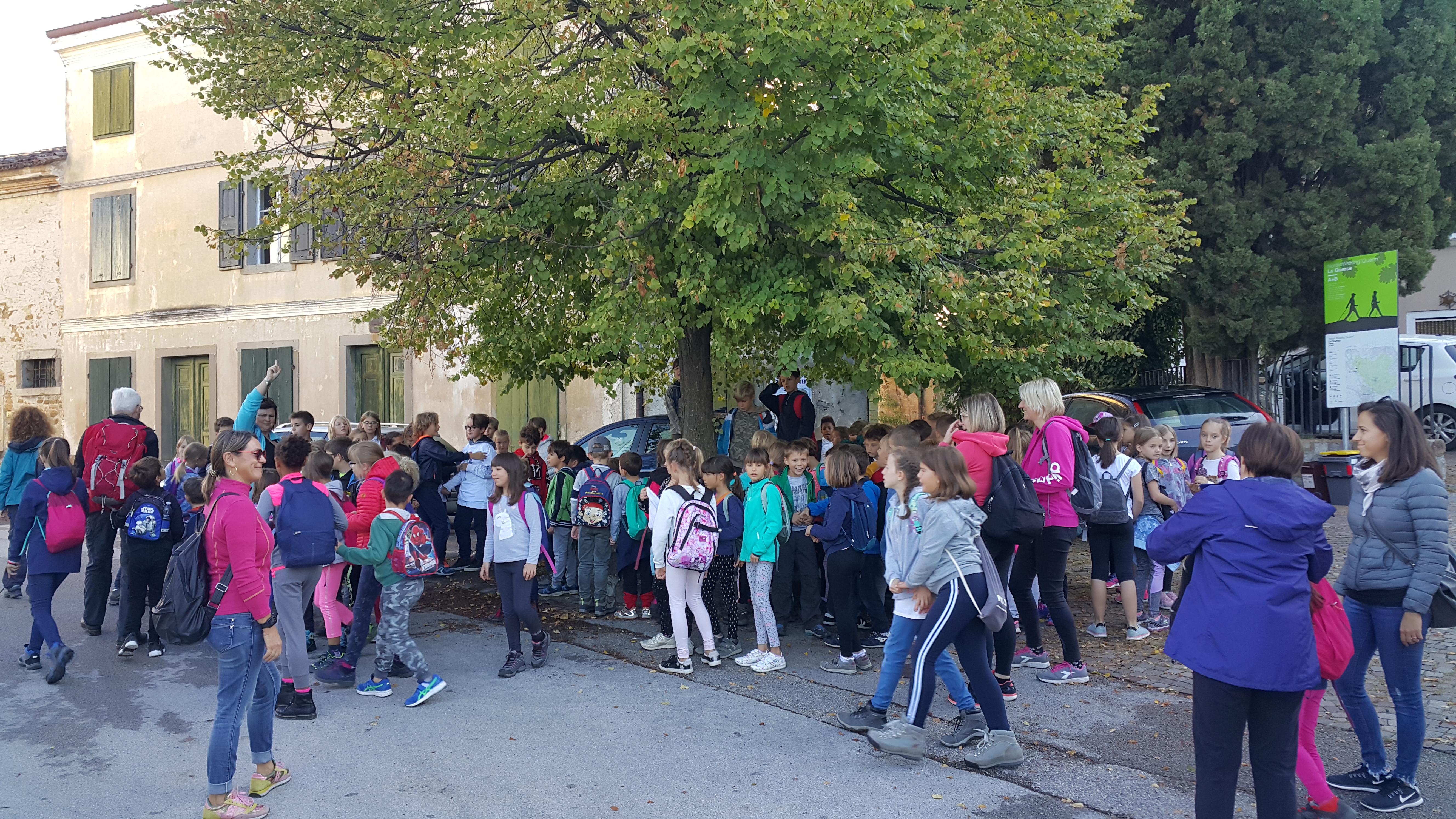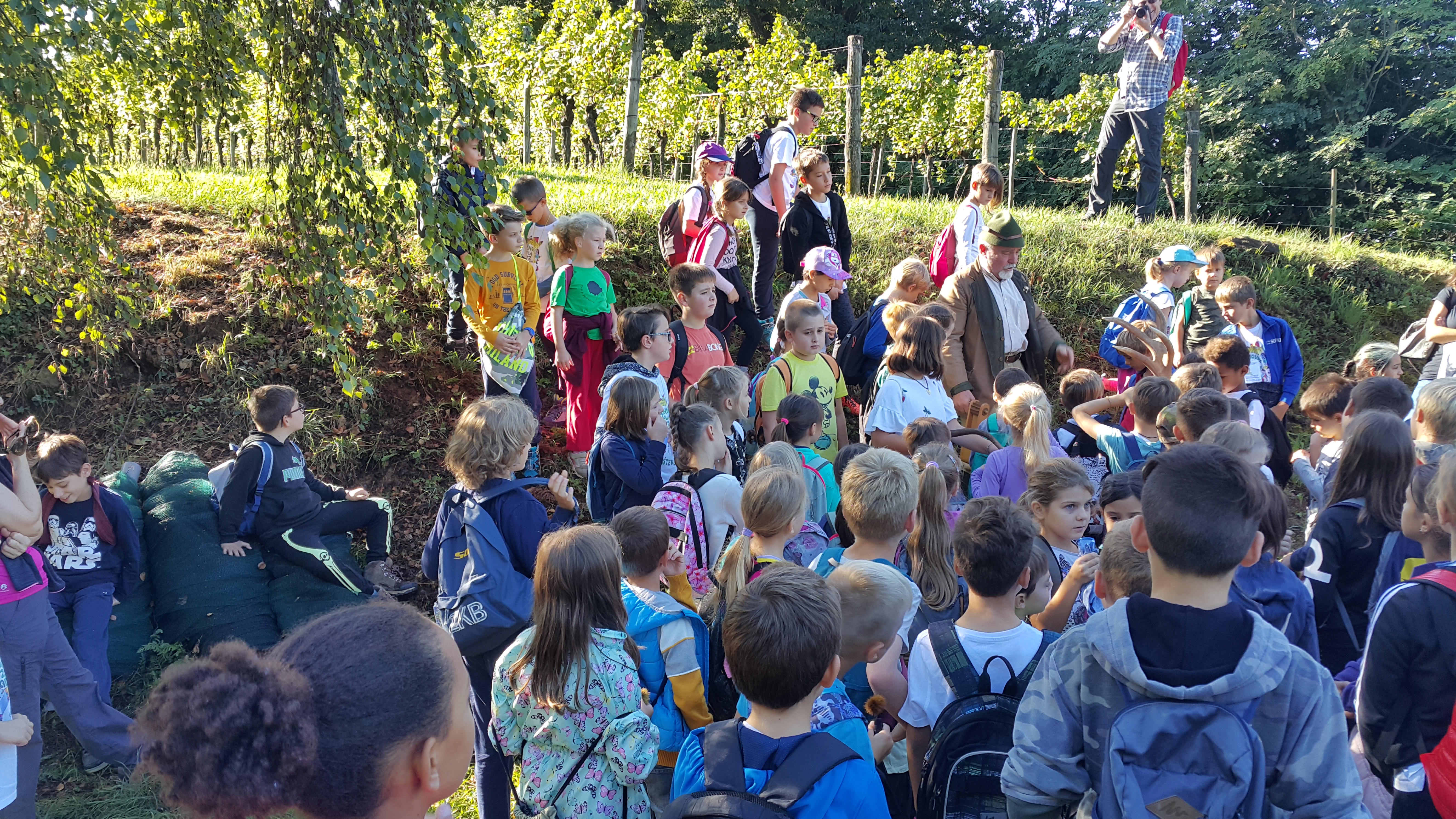 V četrtek, 26.9.2019, smo se tretješolci, namesto v šolske klopi, posedli na avtobus in se odpeljali pred osnovno šolo Ludvika Zorzuta v Bračanu. Skupaj z učenci te šole in osnovne šola Alojza Gradnika iz Števerjana smo se odpravili na pohod proti zastavljenemu cilju. Na naši poti nas je čakalo presenečenje, saj so nas pričakali starši otrok iz Bračana. Pripravili so nam manjšo pogostitev, živo glasbo (harmonika) in lovca, ki nam je postregel z zanimivostmi (za uho in oko). Pot smo nadaljevali do cerkvice pod Krminsko goro, kjer se nam je odprl pogled in nas je pričakala malica. Po krajšem kulturnem programu smo se sproščeno spustili po poti nazaj in s prijetnim druženjem zaključili.