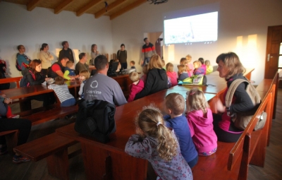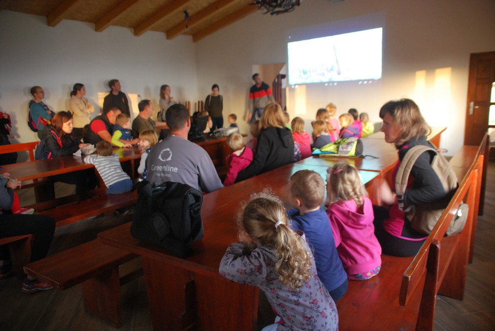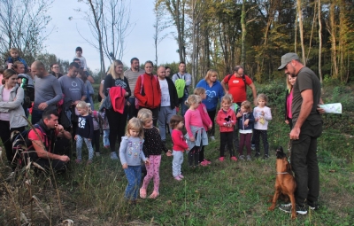 Sončki in Muce iz vrtca Kojsko smo v četrtek, 24. oktobra, povabili starše na pohod. Odpravili smo se k lovski koči na Sabotinu. Na poti nas je presenetil lovec s psom . Predstavil nam je lovsko prežo in krmišče. Presenečenj pa ta dan ni bilo še konec. Naš hišnik in lovec Danilo nam je spekel slasten kostanj. V koči nam je pripravil še zadnje presenečenje. Ogledali smo si nočne posnetke krmišč, kjer smo videli srnjaka, prašiče, srene, jazbeca...