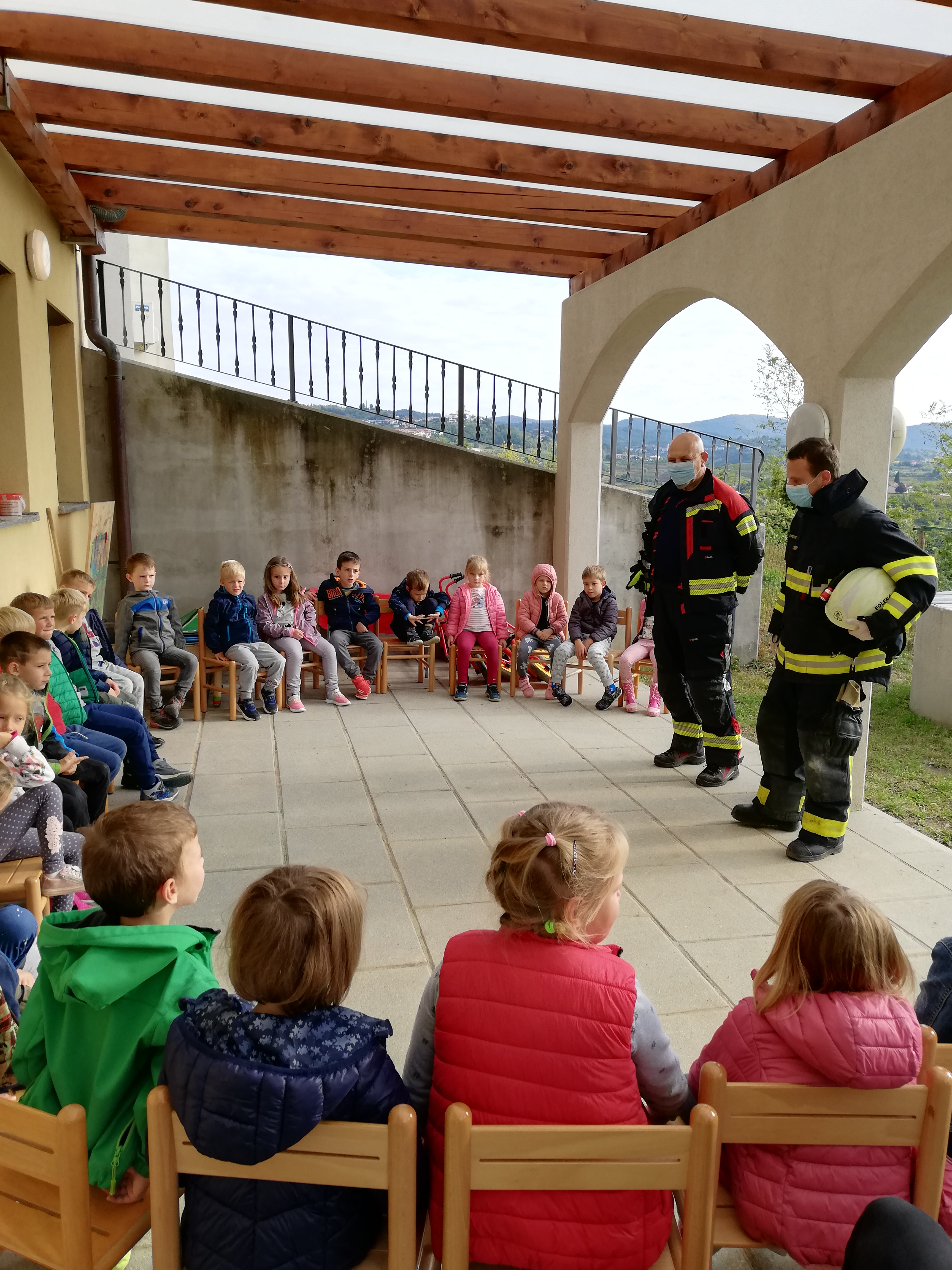 Policist in gasilca sta nas tokrat obiskala z namenom pogovora. Ko bodo naslednjič obiskali pa si bomo ogledali tudi njihovo opremo in vozila. Se že veselimo.