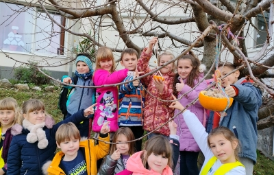 Učenci prvih razredov smo v podaljšanjem bivanju izdelovali bio-razgradljive ptičje krmilnice. Izdelali smo jih iz vrvic volne in olupka pomaranče. Sedaj pa spremljamo, koliko bodo ptice v okolici šole hodile na šolsko malico.