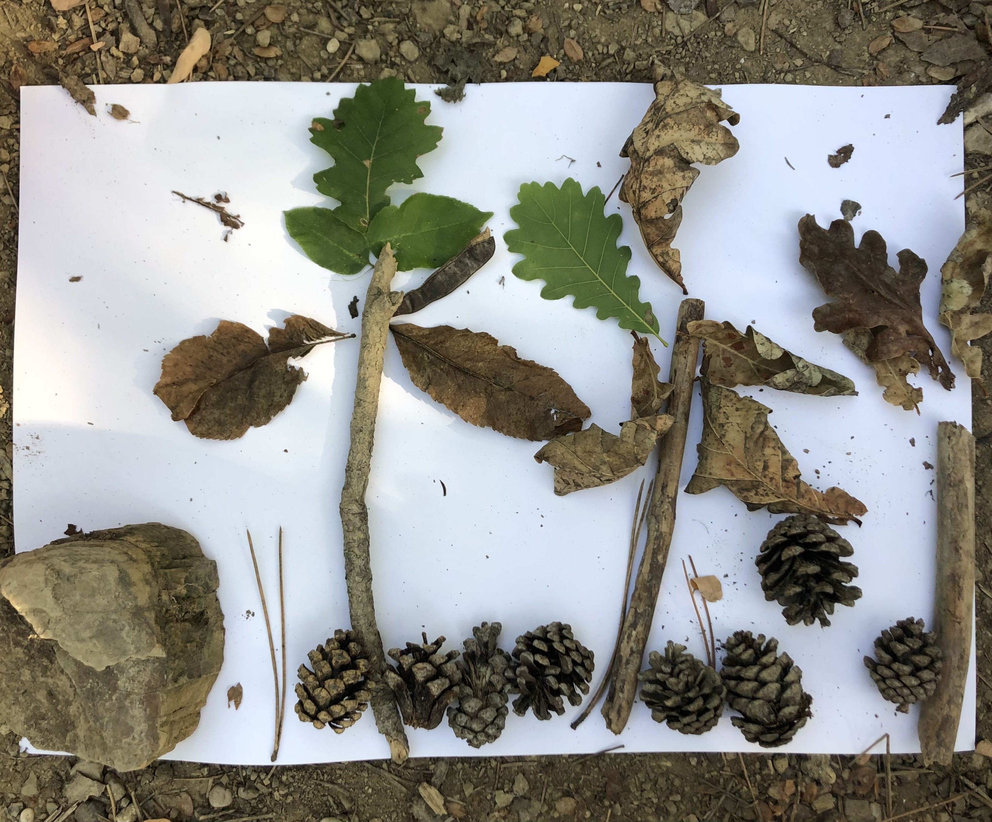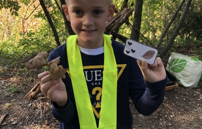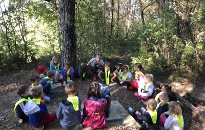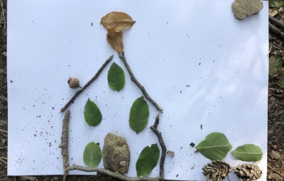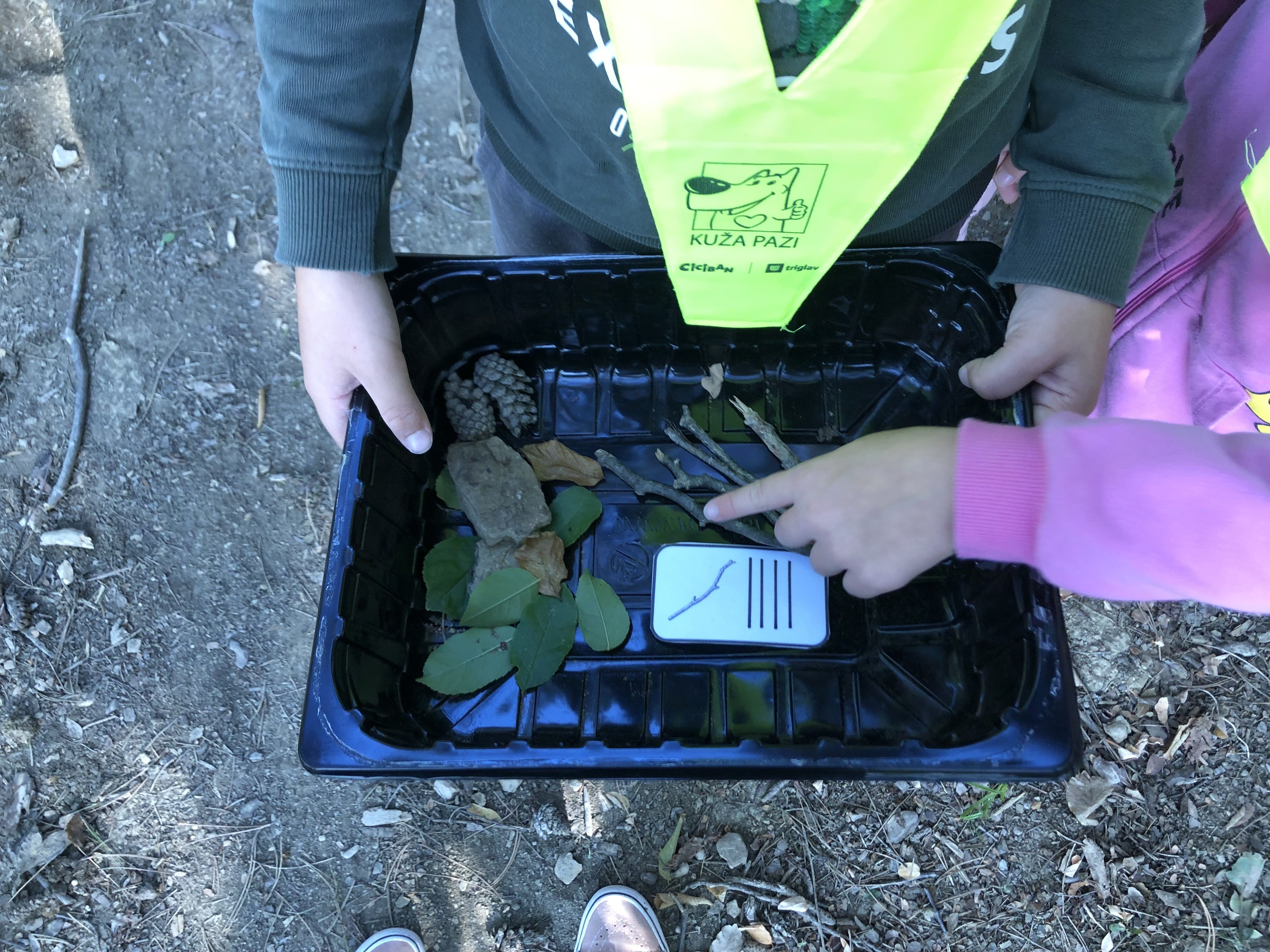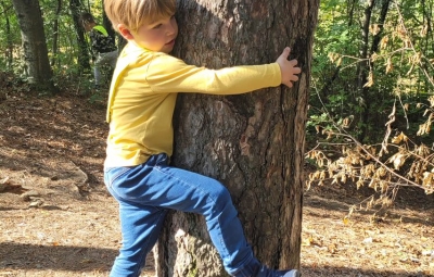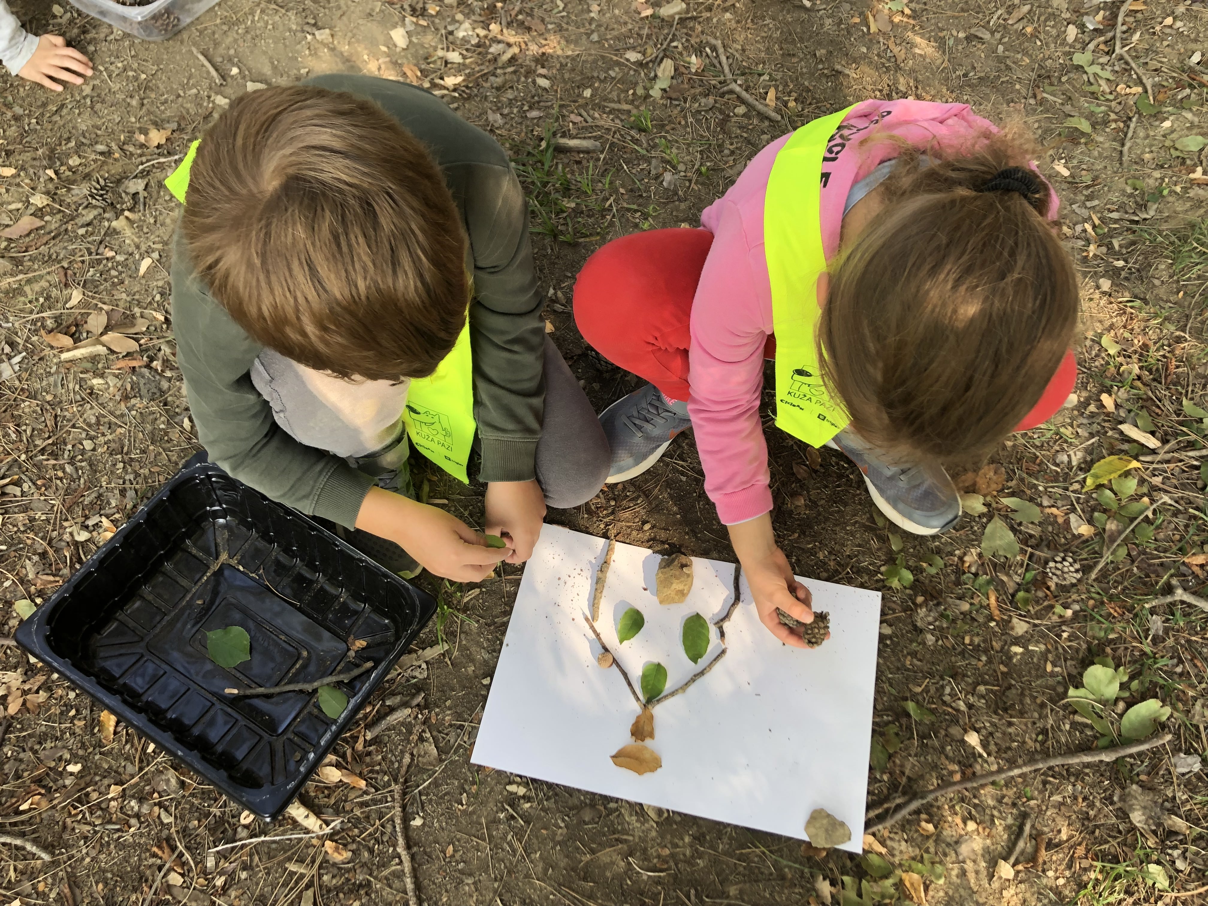 Prvošolci smo se danes odpravili v borov gozdiček, ki je naša najljubša učilnica. Najprej smo se povezali z naravo - poslušali smo zvoke okoli nas, začutili rahel vetrič in toplo jesensko sonce. Nato smo se pari spremenili v matematične detektive, iskali smo naravne materiale in se učili preštevanja do 5. Iz najdenih materialov smo izdelali slike in pripravili pravo gozdno razstavo. Nabrali smo tudi veje in palice ter iz njih oblikovali veliko drevo, po katerem smo plezali. Za konec smo si zaploskali z drevesi.