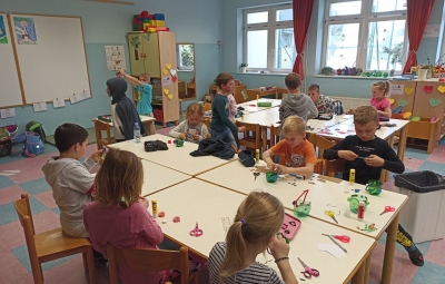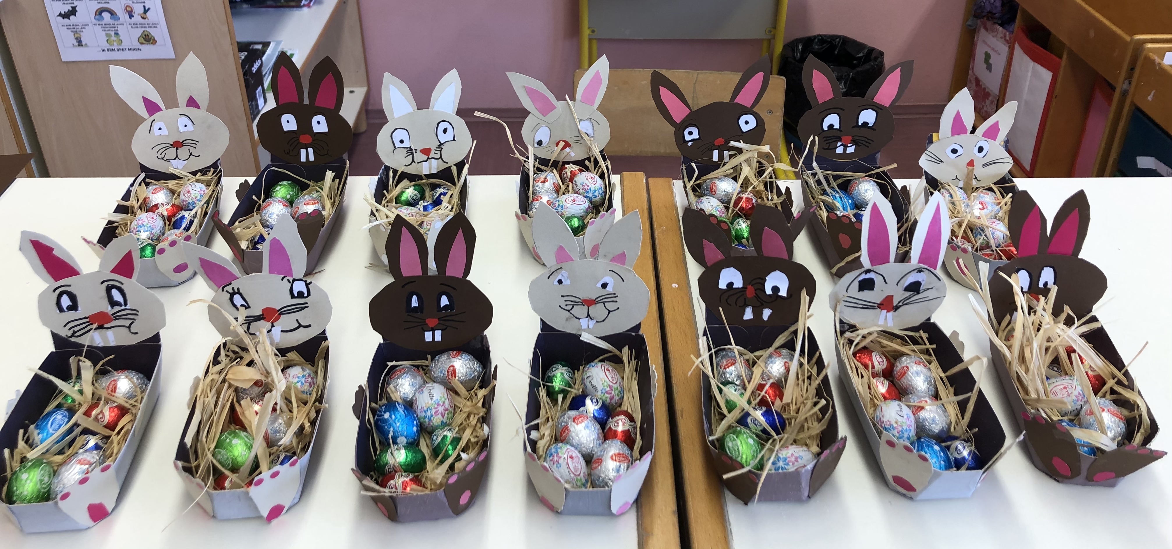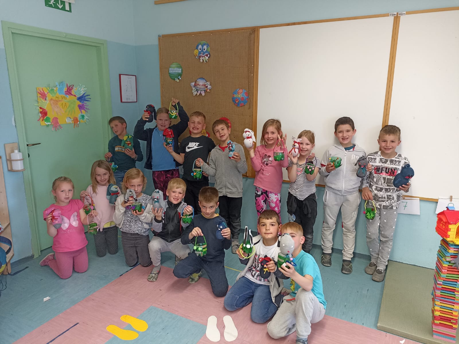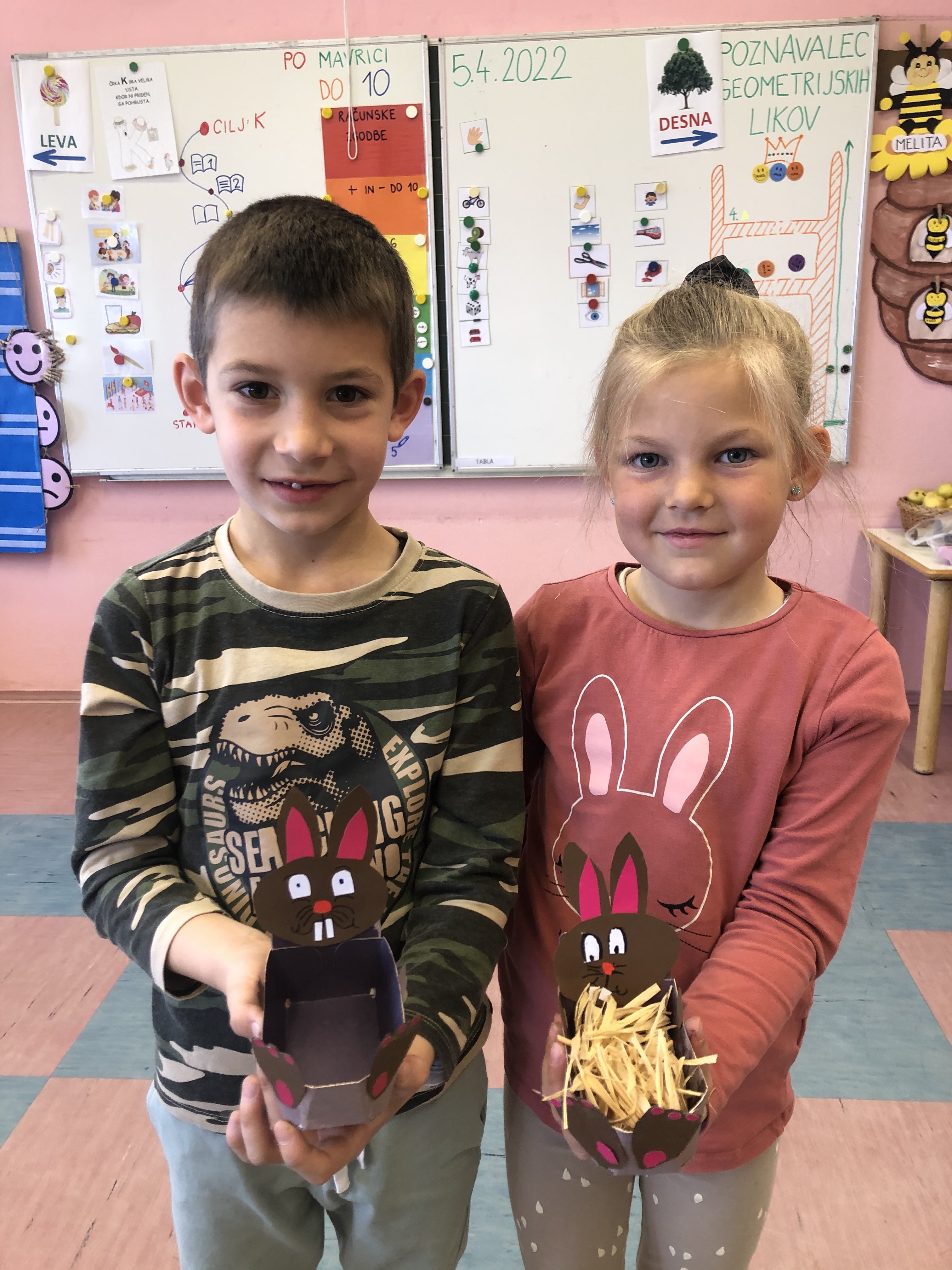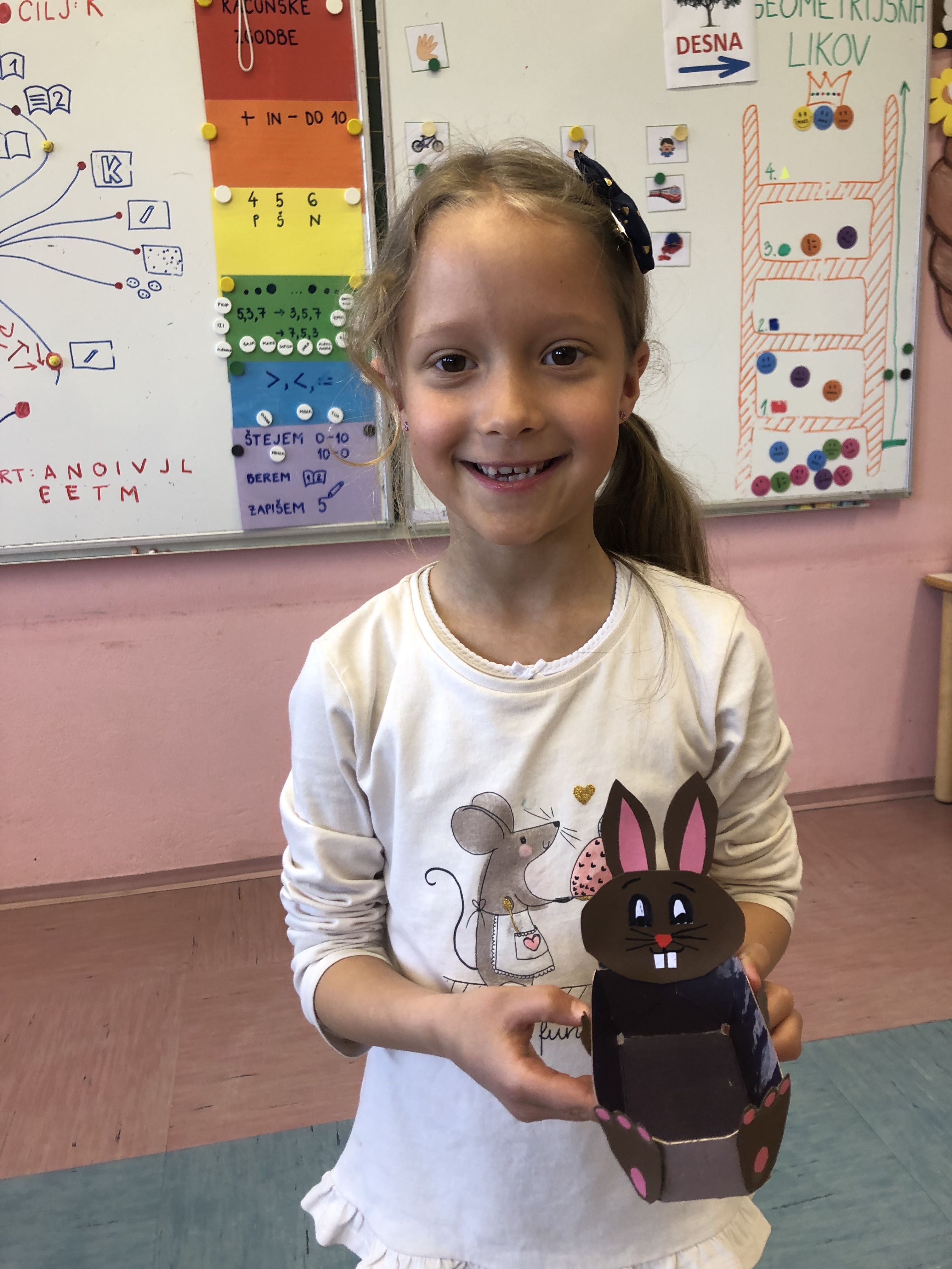 Prvošolci smo v tem tednu imeli praznično obarvan tehniški dan. Najprej smo morali ugotoviti kateri praznik se bliža - naloga ni bila lahka, v gozdičku smo morali poiskati jajčka in razvozlati uganko. Ugotovili smo, da prihaja Velika noč. Hitro smo zavihali rokave ter začeli z izdelovanjem velikonočnih izdelkov, ki že krasijo naše razrede in domove.