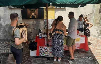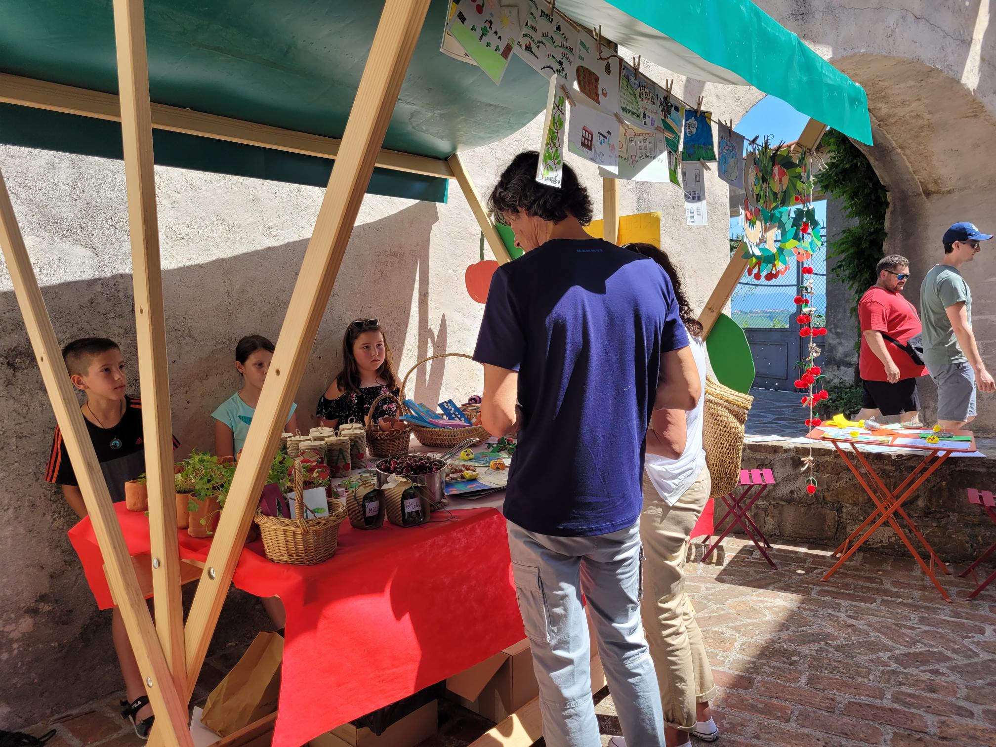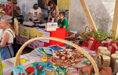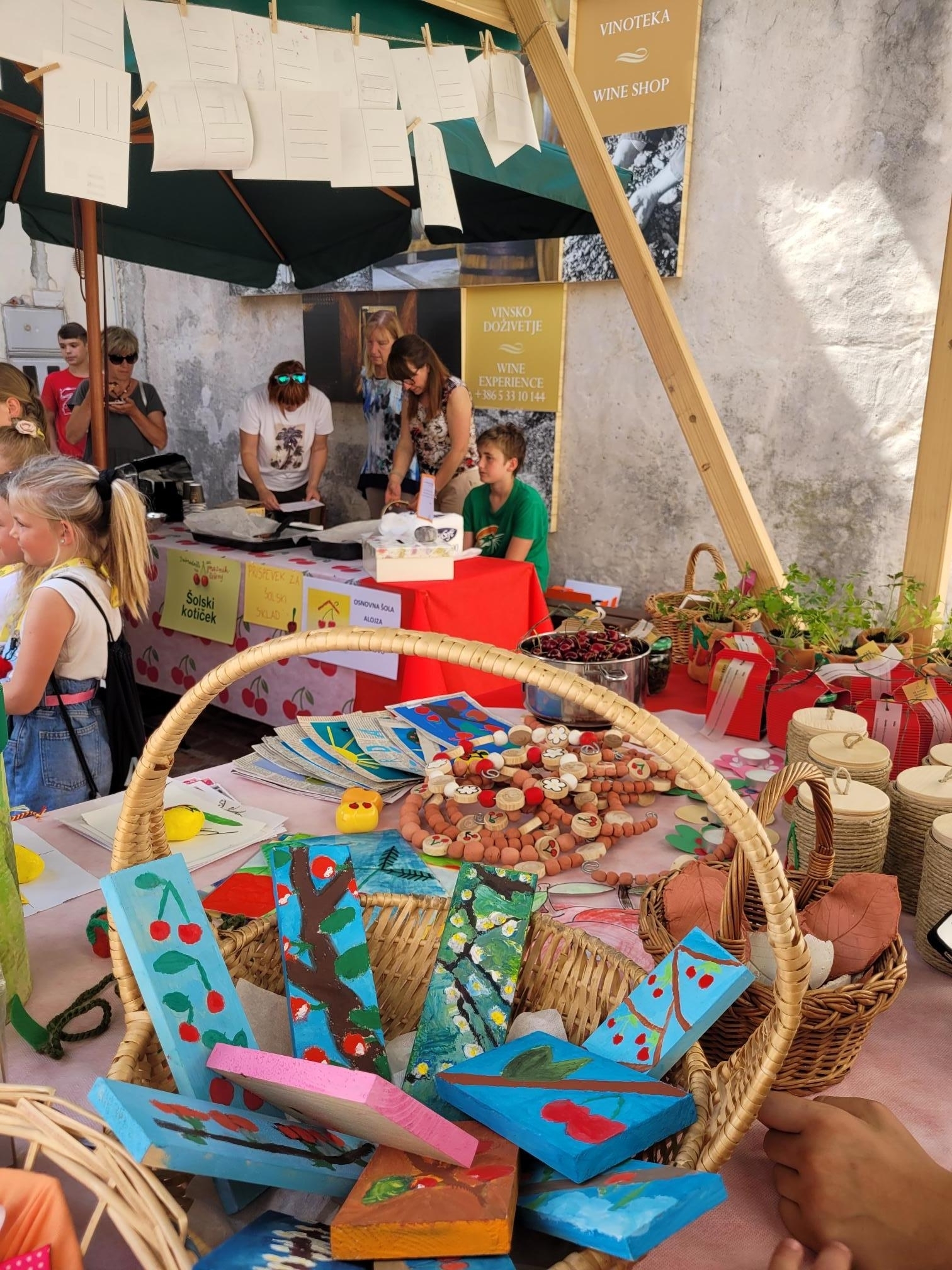 Na PRAZNIKU ČEŠENJ se je letos na stojnicah pridružila tudi številčna delegacija učencev in učiteljev naše šole ter staršev, ki so zbirali prostovoljne prispevke za ŠOLSKI SKLAD. Na stojnicah so ponujali izdelke učencev, ki so jih ustvarili med poukom, češnjevo pecivo, ki so ga spekli pri gospodinjstvu ter ponujali kavo. Dogajanje je popestril pevski zborček prvošolcev iz Dobrovega ter violončelistka Žana Rusjan. Pri organizaciji prostora so nam bili v pomoč člani ZTKMŠ Brda.