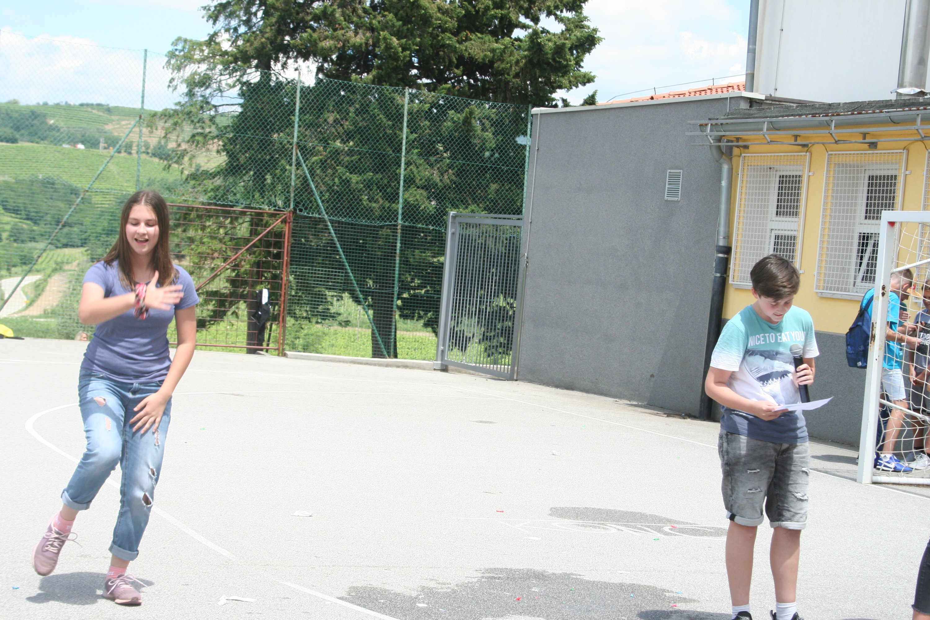V petek, 12. 6., je bilo na igrišču zelo veselo in glasno. Tudi letos so si morali osmošolci izboriti primat za naslednje šolsko leto. Ob opravljanju izzivov s šaljivimi igrami ter kvizi si je tako 8. a razred priboril ključ kot simbol, da bodo “glavni” po odhodu devetošolcev.
