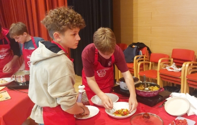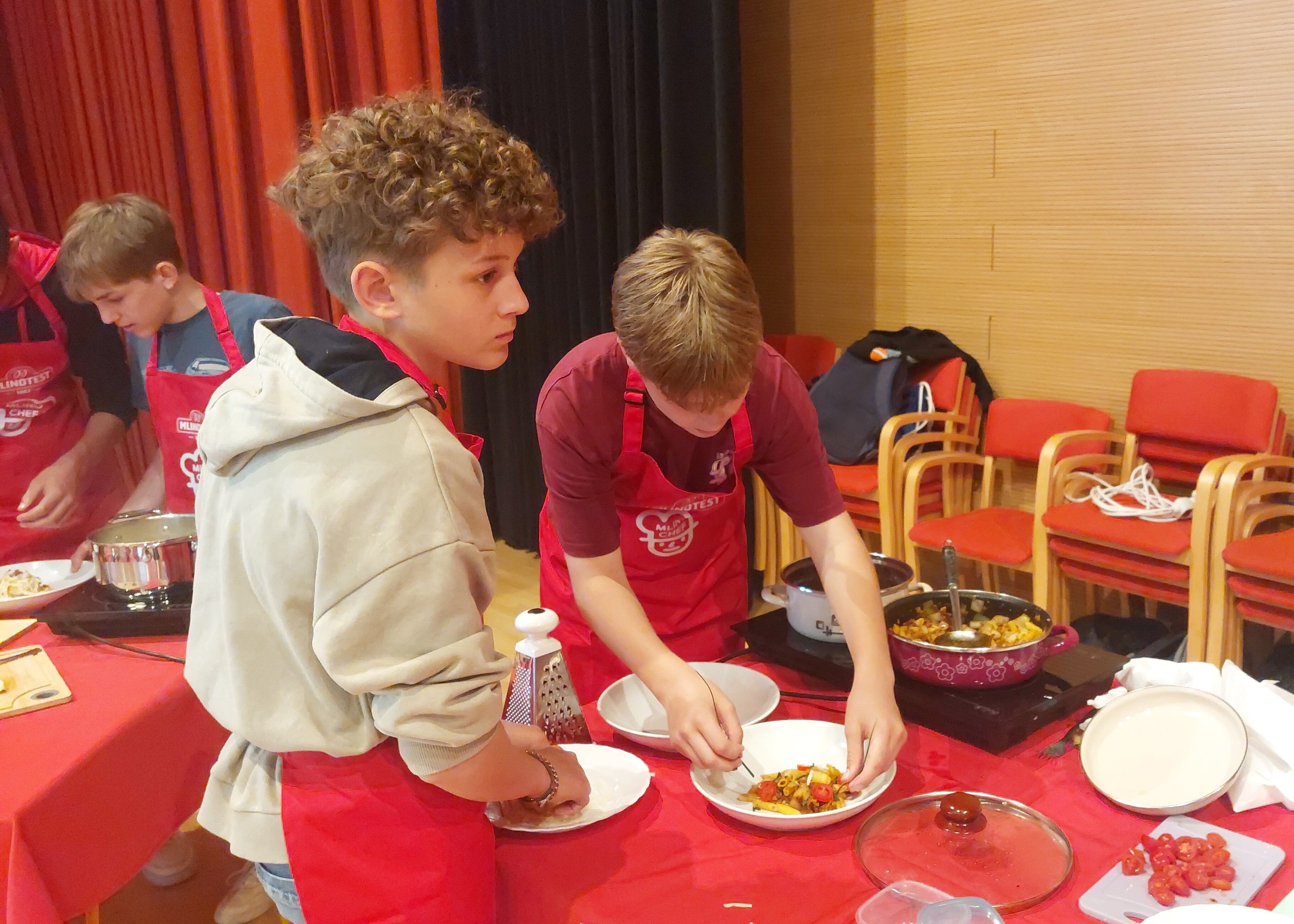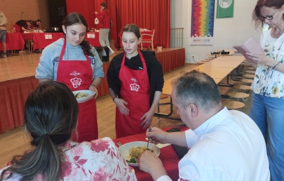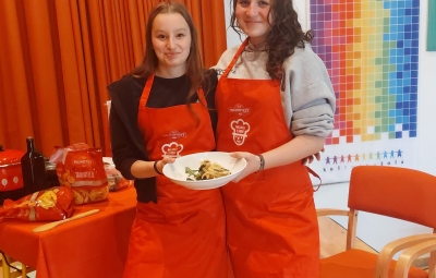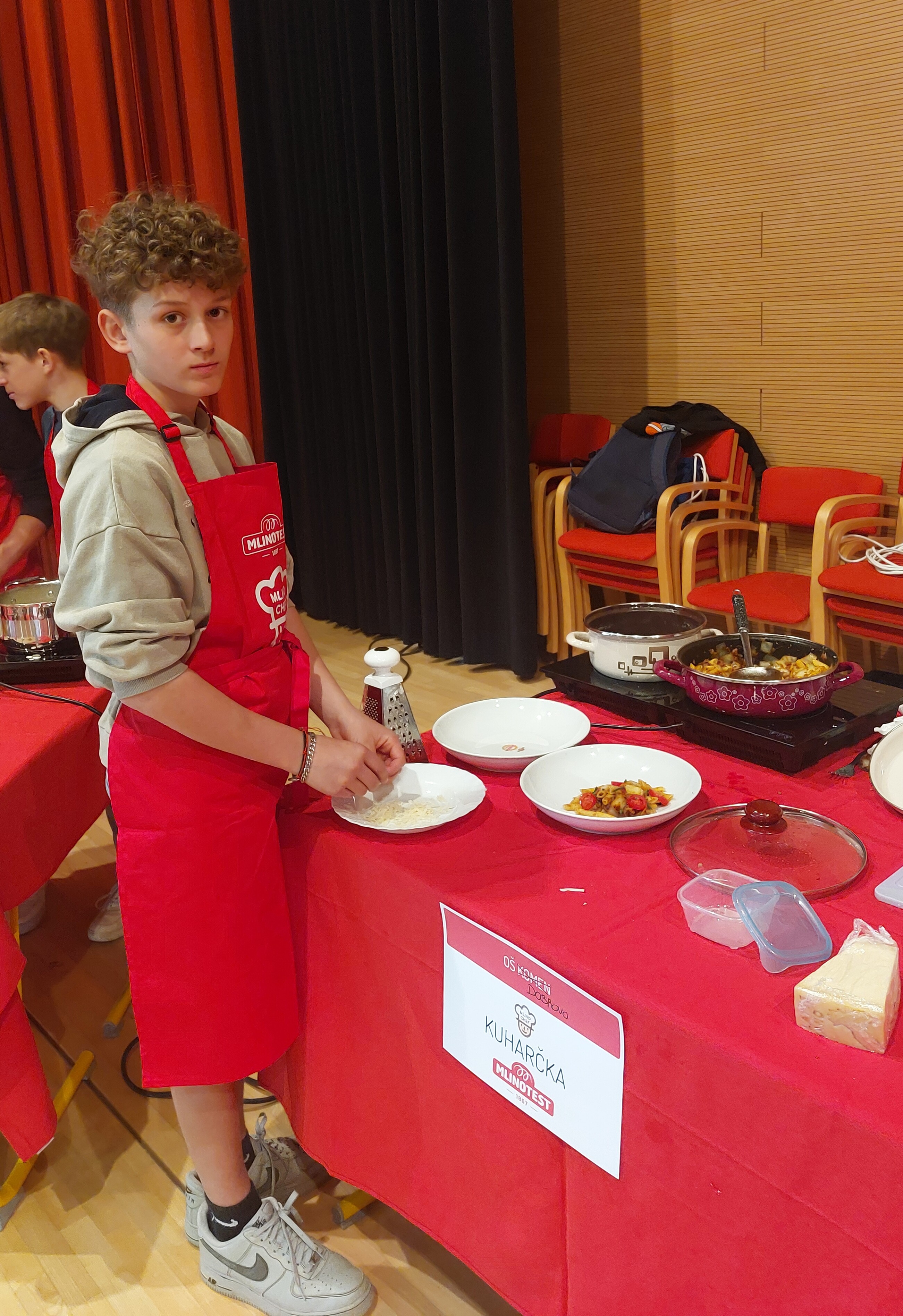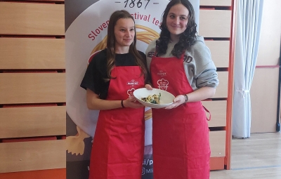 Sreda, 8. april - KUHARČKA (sedmošolca Arne in Filip) in POSKOČNI BRIKI (osmošolki Živa in Sofia) se odpeljejo v Kanal na kuharski izziv - pripraviti pravilno kuhane testenine s pomladnimi in lokalno tipičnimi sestavinami.