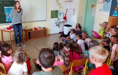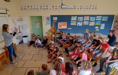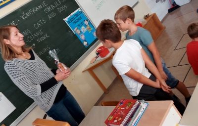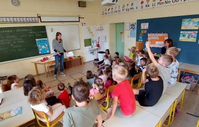 V okviru Tedna otroka, ki ima v letošnjem šolskem letu temo »ZAKAJI IN ZATOJI RADOVEDNOSTI«, smo na podružnični šoli Kojsko, v 2. in 3. razredu,  gostili ga. Tanjo Passoni, ki je po poklicu prevajalka. S svojim navdušenjem nas je popeljala v svet prevajanja in nam predstavila svoj izjemno raznolik poklic. Skupaj smo se potopili v prevajalsko delo, preučevali smo zanimive besede in spoznali nekaj izposojenk iz angleškega jezika.