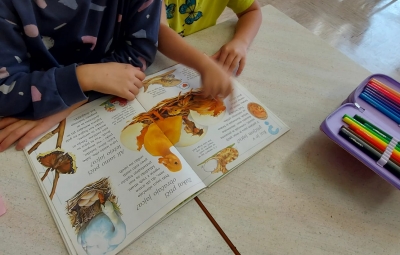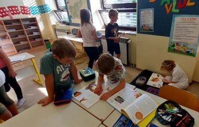 Nadaljevali smo z delavnico, kjer so učenci iskali vprašanja in odgovore v otroški strokovni literaturi. To je bila odlična priložnost, da so izboljšali svoje jezikovne spretnosti, se naučili nekaj novega o prevajanju ter bolje razumeli pomen različnih jezikov in kultur.