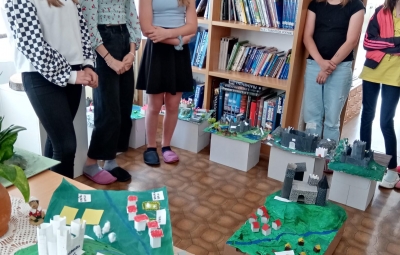 Sedmošolci so pri medpredmetnem povezovanju zgodovine in likovne umetnosti ustvarjali makete zemljiških gospostev. Nastali so izjemni prikazi življenja v fevdalizmu, ki si jih lahko ogledate na razstavi v knjižnici.