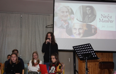 Ob letošnjem kulturnem prazniku smo člani dramskega krožka, orffove skupine in pevci solisti pripravili proslavo, ki smo jo posvetili pesnici, pisateljici, novinarki, pedagoginji in prevajalki NEŽI MAURER, ki bo v letošnjem letu praznovala 90. rojstni dan.