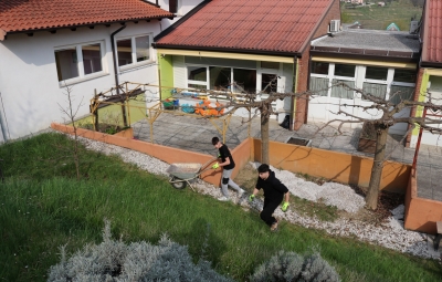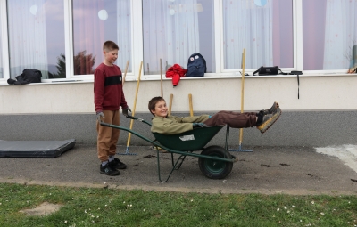 V soboto, 21. 3. 2026, smo se učenci in učitelji v okviru projekta GREEN2GETHER, ki je pred kratkim zaživel na naši šoli, zbrali, da bi po dolgi zimi uredili šolski vrt. Delovne akcije se je udeležilo pet učiteljev ter osem učenk in učencev. Dan, ki bi ga sicer običajno preživeli doma, smo izkoristili za delo in druženje v naravi.